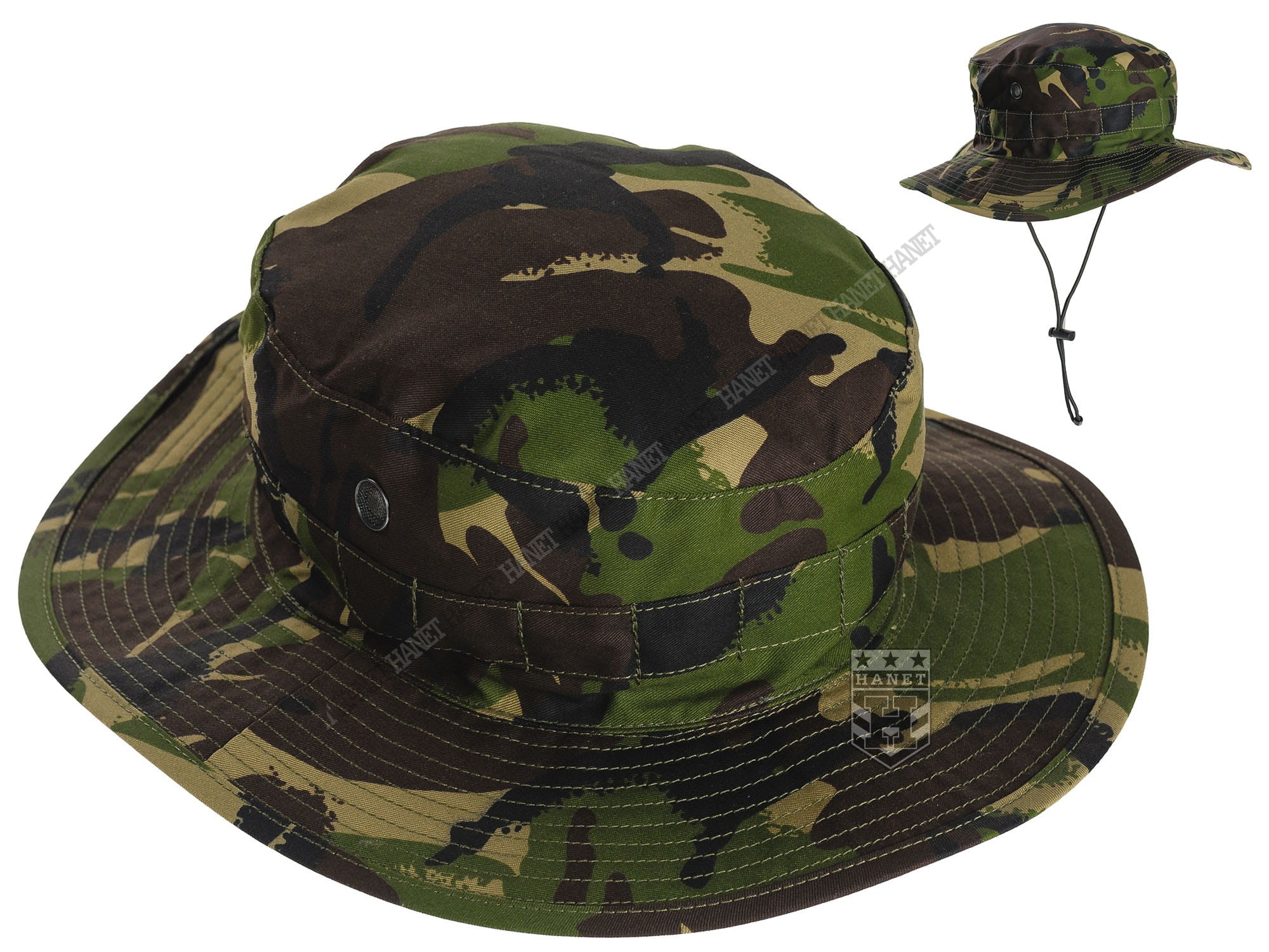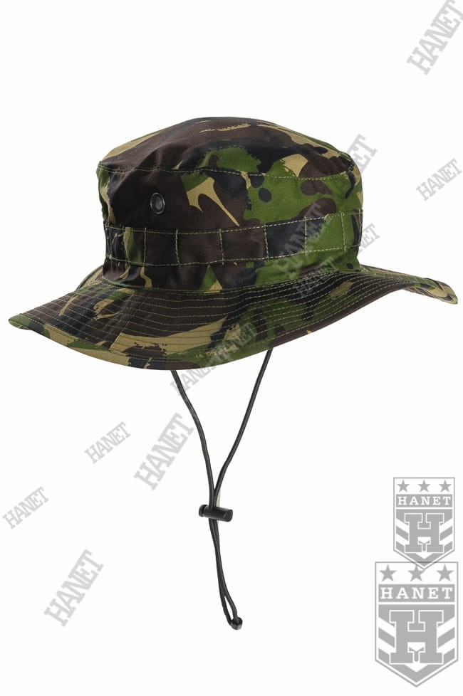 Nowoczesny kapelusz wojskowy Armii Brytyjskiej - Hat Combat Tropical. Nowy, stan fabryczny w oryginalnym worku. Oryginalność świadczy i bezkompromisowej wojskowej jakości. Wykonany z gatunkowych materiałów z dużą dbałością o szczegóły. Solidny materiał, gruby i trwały a jednocześnie szybkoschnący i oddychający. Doskonały krój gwarantuje, że kapelusz zawsze dobrze leży. Duże wywietrzniki z gęstą siatką która zapobiega wdarciu się insektów pod kapelusz. Szerokie i usztywniane rondo chroni przed słońcem oraz deszczem, dodatkowo przeszywane. Kapelusz w okół obszyty taśmą do mocowania maskowania lub moskitiery. Elastyczna gumka pod brodę ze stoperem, zabezpiecza kapelusz przed podmuchami wiatru. Możliwość uniesienia boków ronda i odsłonięcia uszu. Materiał fabrycznie impregnowany.