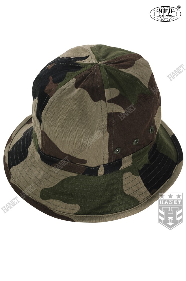Oryginalny kapelusz Legii Cudzoziemskiej i Armii Francuskiej. Nowy - stan fabryczny. Wykonany z najwyższej jakości materiałów z dużą dbałością o szczegóły. Specyfikacja militarna gwarantuje solidność. Materiał gruby i trwały a jednocześnie szybkoschnący i oddychający. Doskonały krój gwarantuje, że kapelusz zawsze dobrze leży. Wywietrzniki dla lepszej cyrkulacji powietrza. Szerokie rondo chroni przed słońcem oraz deszczem. Przeszycia kilku warstw materiału dla większej sztywności ronda.