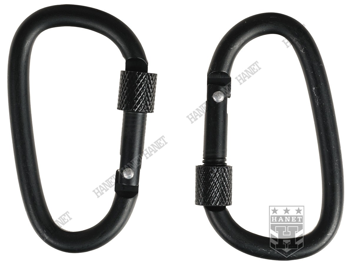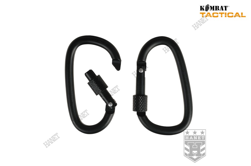 Para lekkich karabinków pomocniczych o specyfikacji militarnej. Praktyczne karabinki do podczepiania części oporządzenia i wyposażenia, budowy schronień oraz napraw polowych. Niezastąpione na biwaku i w survivalu. Doskonałe do zaczepiania odciągów, troczenia noża, kluczy, latarek, itd. Możliwość mocowania na plecakach, kamizelkach lub wszędzie gdzie zajdzie się taka potrzeba. Karabinki są lekkie i bardzo wytrzymałe. Zapakowane w estetyczny blister.