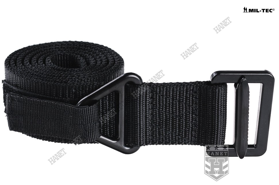 Uniwersalny pas taktyczny. Produkt niemieckiej marki Mil-Tec®. Specyfikacja militarna gwarantuje solidność i niezawodność. Model Delta zyskał uznanie wśród służb mundurowych na całym świecie, zaadoptowany przez oddziały specjalne wojska i policji oraz kontyngenty na misjach. Uniwersalny, poza klasycznym zastosowaniem może służyć także jako uprząż ratunkowa, pas do kabur, paneli udowych oraz oporządzenia taktycznego. Ucho DELTA pozwala na zamocowanie karabinka lub liny. Doskonały do dodatkowej asekuracji. Taśma z rzepem zabezpiecza ucho w pozycji "marszowej", zapobiega jego odstawaniu. Wytrzymała plecionka wykona ze 100% nylonu, gruba i wytrzymała. Pas oddycha, nie powoduje odparzeń, jest dość miękki, co zapewnia wygodę. Miejsce łączenia klamry z pasem wykończone kilkukrotnym szyciem. Wyposażony w rzep stanowiący dodatkową ochronę przed rozpięciem. Rzep unieruchamia wolną końcówkę pasa. Końcówka pasa o ściętym kształcie ułatwia przełożenie prze klamrę i szlufki. Pasuje do szlufek min. 45mm. Masywna stalowa klamra z pewnym systemem zapięcia, nie puszcza nawet pod wpływem dużej siły. Sprzączkę zaciska się na taśmie, szlify antypoślizgowe zapobiegają popuszczaniu pasa. Łatwa i szybka regulacja obwodu. Pas nie jest przeznaczony do wspinaczki i posiada certyfikatów bezpieczeństwa, producent oraz sprzedający nie ponosi odpowiedzialności za ewentualnie powstałe szkody.