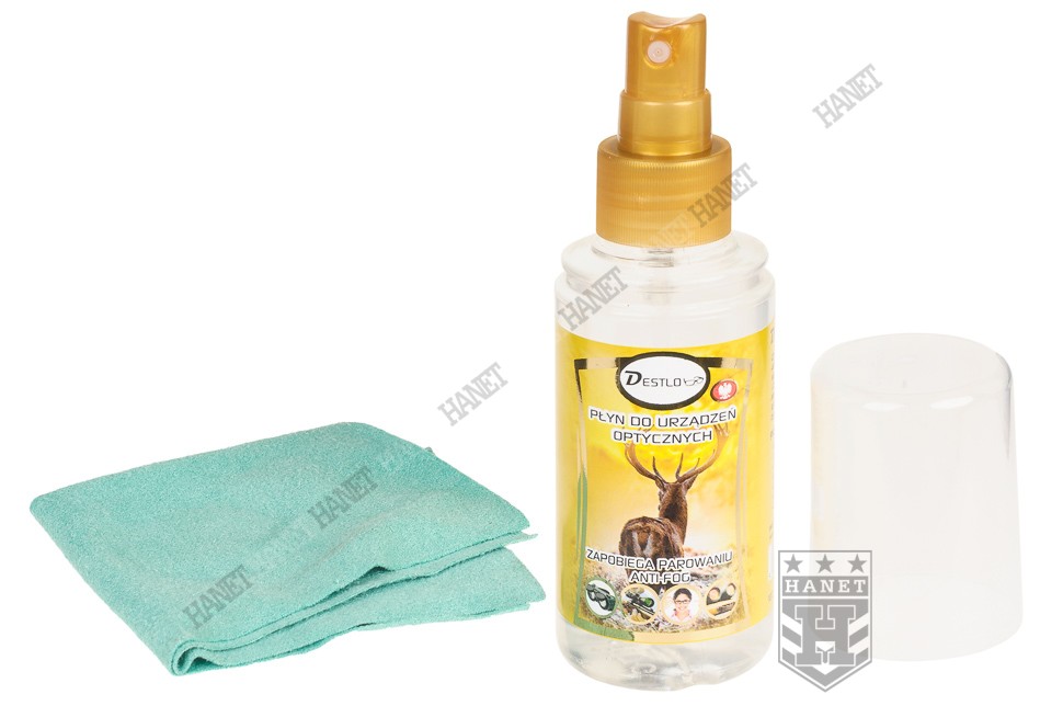 Profesjonalny środek do czyszczenia urządzeń optycznych. Produkt firmy Destlo, która jest jednym z czołowych Polskich eksporterów na rynki zachodnie w branży. Firma Destlo specjalizuje się w produkcji środków używanych w medycynie, przez optyków, nurków i środowiska strzeleckie. Płyn Destlo skutecznie usuwa wszelkie zabrudzenia nie pozostawiając smug. Lunety i celowniki optoelektroniczne mocowane na broni, są szczególne narażone na zabrudzenia. Każde zabrudzenie negatywnie wpływa na obraz padający na siatkówkę oka, co przekłada się na niższą skuteczność celowania. Mycie drogich i delikatnych soczewek/obiektywów w nieodpowiednich środkach może doprowadzić do uszkodzenia ich powłok.
