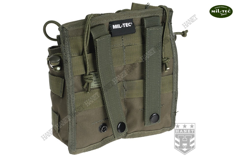 Ładownica jest lekka i wytrzymała. Została uszyta z solidnego materiału Oxford Fabric 600D 100% poliester. Wodoodporna powłoka PVC od wewnętrznej strony materiału. Krawędzie wykończone taśmą dla zabezpieczenia przed przecieraniem. Wytrzymałe szwy, wielokrotne przeszycia w newralgicznych miejscach. Guma ściągająca posiada dwa stopery do regulacji, jest stabilizowana przelotkami. Elastyczne gumy Bungee-Cord z oplotem. Grodzie wewnętrzne wykonane z grubej taśmy parcianej. System modularny MOLLE / PALS, usztywniane taśmy montażowe i mocne napy. Integralna część modularnego oporządzenia taktycznego montowana zazwyczaj do kamizelki operacyjnej, panelu udowego, plecaka lub bezpośrednio na pasie. Panel montażowy umieszczony od frontu.