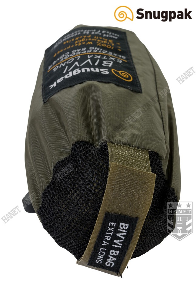 Nowoczesny krój w kształcie mumii gwarantuje dopasowanie do większości śpiworów. Bivvi Bag posiada obszerny kaptur wyposażony w regulowany ściągacz ze stoperem. Pokrowiec posiada kompaktową pochewkę transportową z dnem wykonanym z przewiewnej siatki, która umożliwia suszenie go w marszu. Uchwyt transportowy do wygodnego przenoszenia w ręce, rzep daje opcję rozpięcia uchwytu i przypięcie pokrowca do oporządzenia.