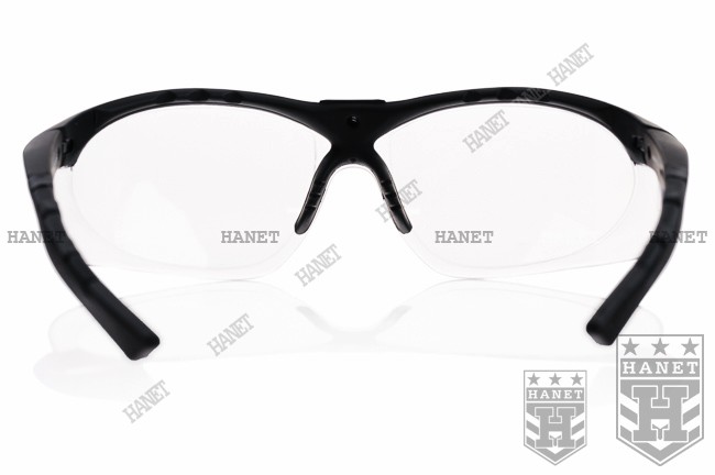 Wytrzymałe, poliwęglanowe szyby posiadają wzmacniające pogrubienie na krawędziach. Szyba w kolorze CLEAR (kat. S0) o przepuszczalności około 99% światła jest idealna na pochmurne dni, wieczory i nocne działania. Szerokokątne szyby nie zawężają pola widzenia, gwarantując pełną widoczność otoczenia. Dzięki technologii Anti-Fog okulary przeciwdziałają parowaniu i zbieraniu się wilgoci, a powłoka Anti-Scratch chroni je przed zarysowaniami.