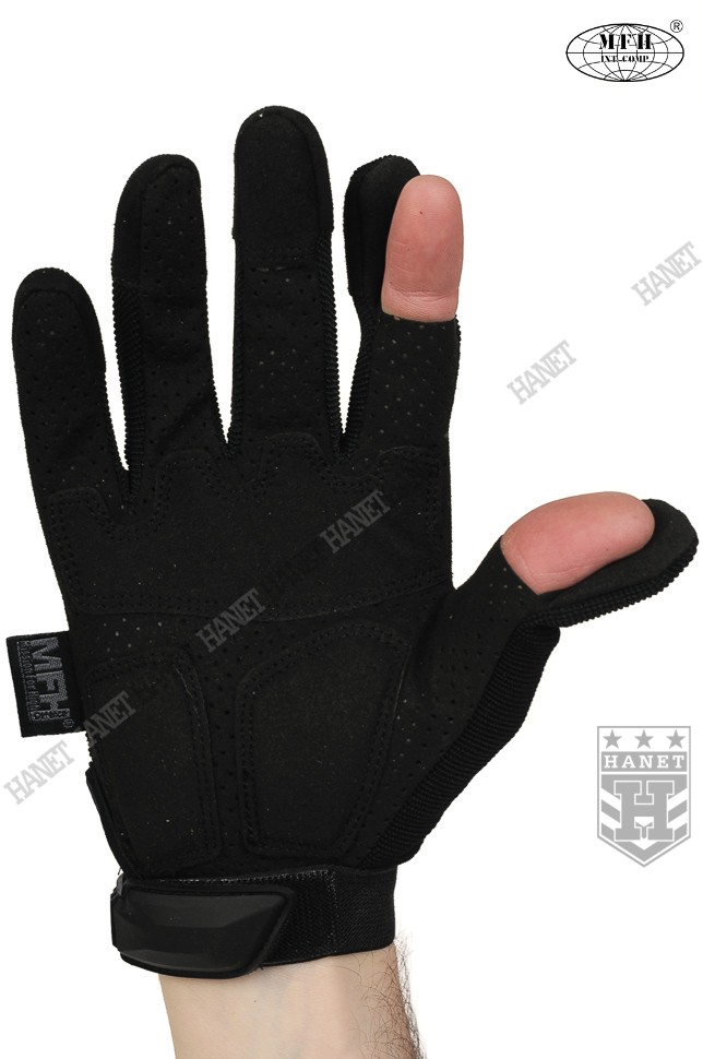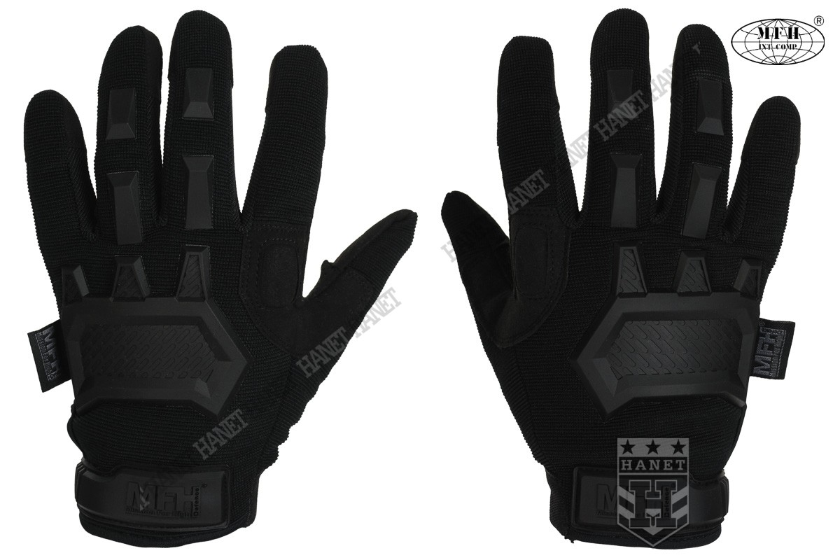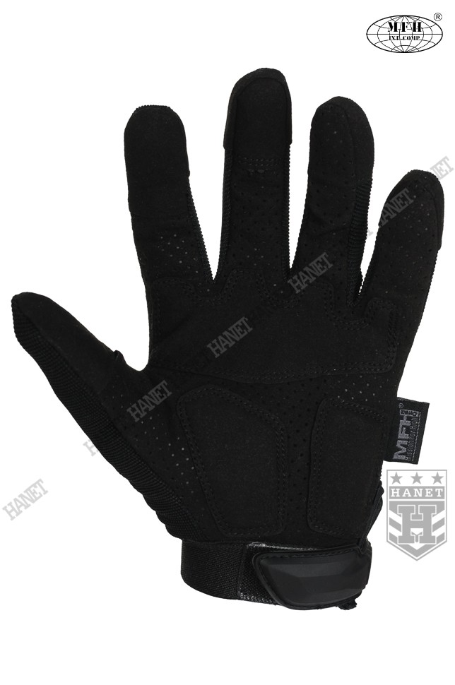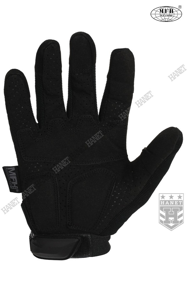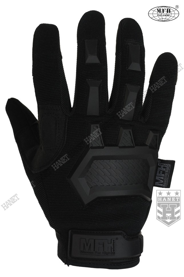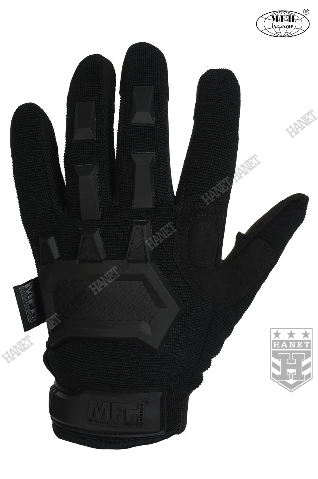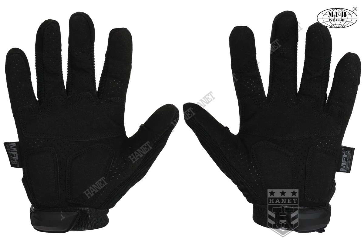 Zaawansowane rękawice taktyczne III generacji. Produkt niemieckiej marki MFH®. Specyfikacja militarna gwarantuje bezkompromisowe rozwiązania. Nowoczesna konstrukcja przystosowania do walki wręcz, działań bojowych, do taktyki czarnej i zielonej. Rękawice wykonane z solidnych, nowoczesnych materiałów jak nylon, poliamid, poliuretan i szlachetna skóra syntetyczna. Zapewniają dobry chwyt i ochronę dłoni, przy jednoczesnym wysokim komforcie. Posiadają otwierany kciuki i palec na spust dla ułatwienia obsługi elektroniki, osłonę kostek, ochronę paliczków i wzmocnienia chwytu. Rękawice są przeznaczone do używania w wysokich i umiarkowanych temperaturach.