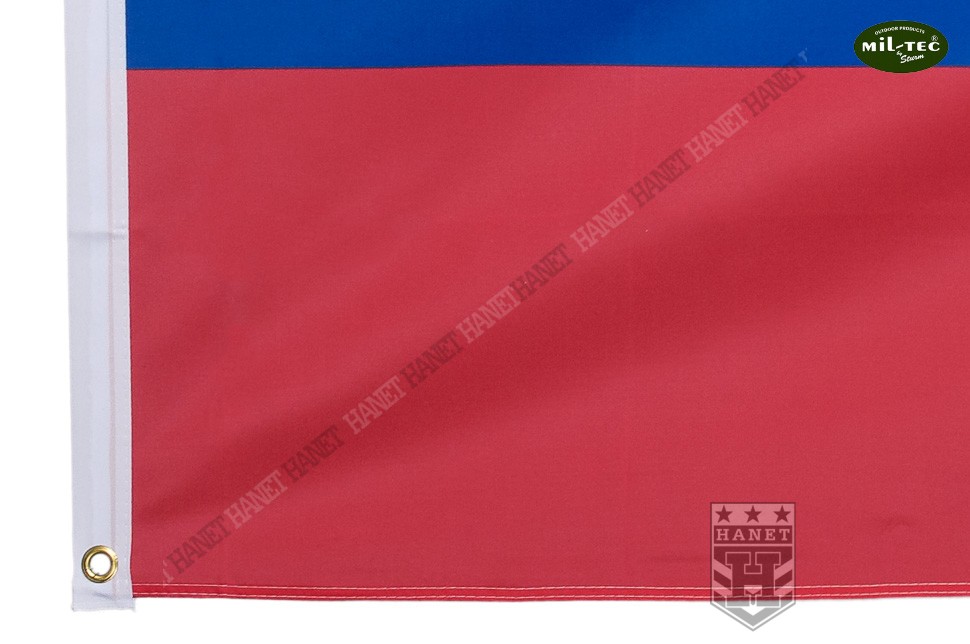 Uniwersalna flaga na maszt lub drzewiec o standardowych wymiarach 90 x 150 cm. Najwyższa, niemiecka jakość wykonania i wyselekcjonowane materiały gwarantują długowieczność użytkowania, nawet w bardzo niekorzystnych warunkach silnego wiatru, częstych opadów i destrukcyjnego działania słońca. Wytrzymały materiał poliestrowy przeznaczony specjalnie do flag. Wszystkie krawędzie boczne z potrójną zakładką i dodatkowo przeszywane podwójnymi szwami - zabezpieczone przed pruciem materiału szarpanego przez wiatr. Barwy narodowe naniesione specjalną techniką drukarską, kolory nie płowieją, flaga zachowuje pożądany wygląd. Lekkość tkaniny ułatwia łopotanie flagi na wietrze. Do poliestru nie przywiera brud i łatwo go doprać, jest szybkoschnący. Dwa nierdzewne, miedziane oczka do montażu na maszcie lub do drzewca, gwarantują solidne zaczepienie. Krawędź flagi na której przynitowane są oczka wzmocniony dwiema warstwami grubego materiału. Dwustronna, na rewersie lustrzane odbicie awersu.