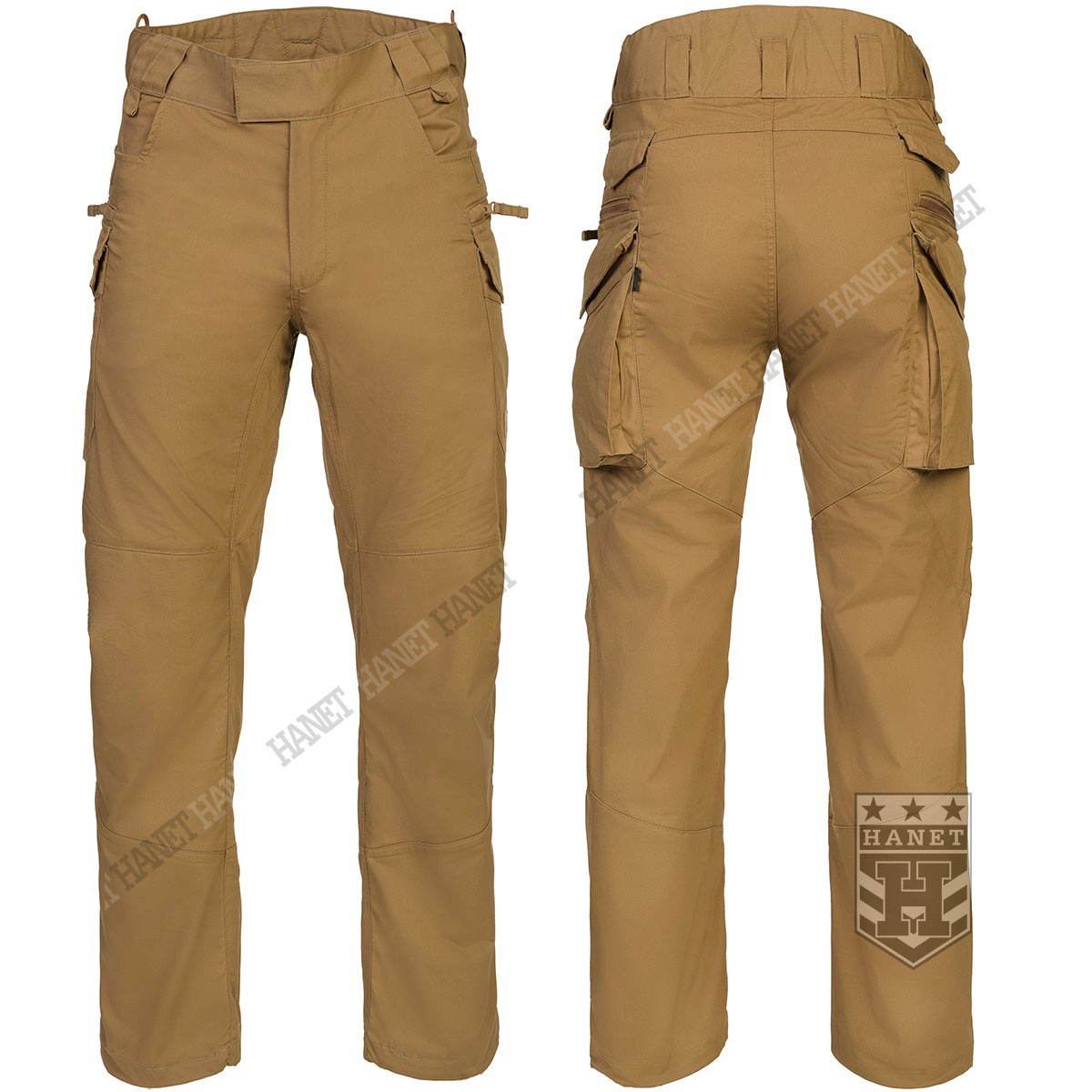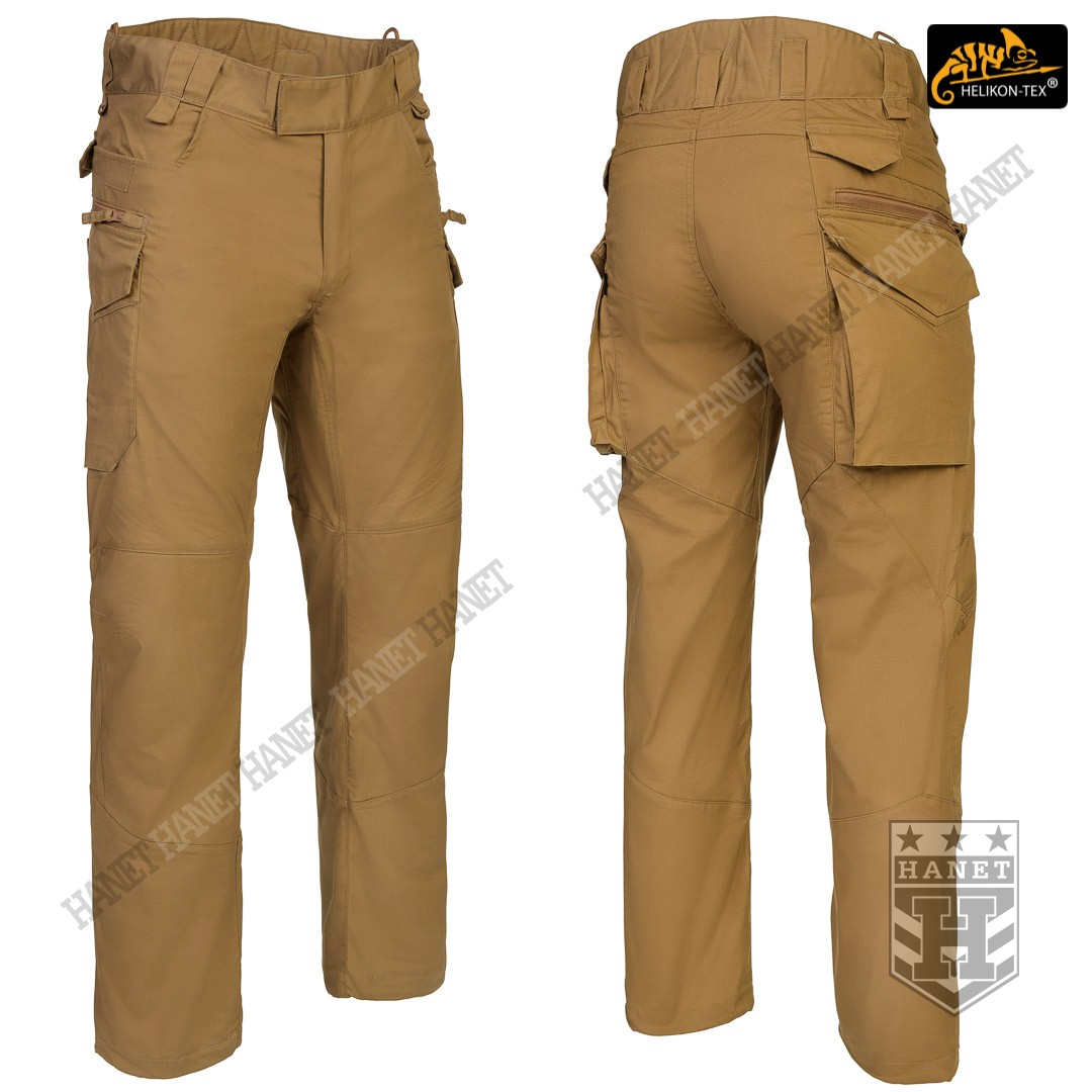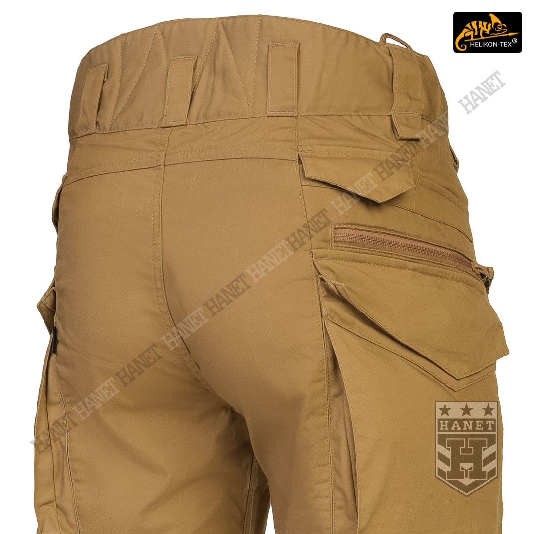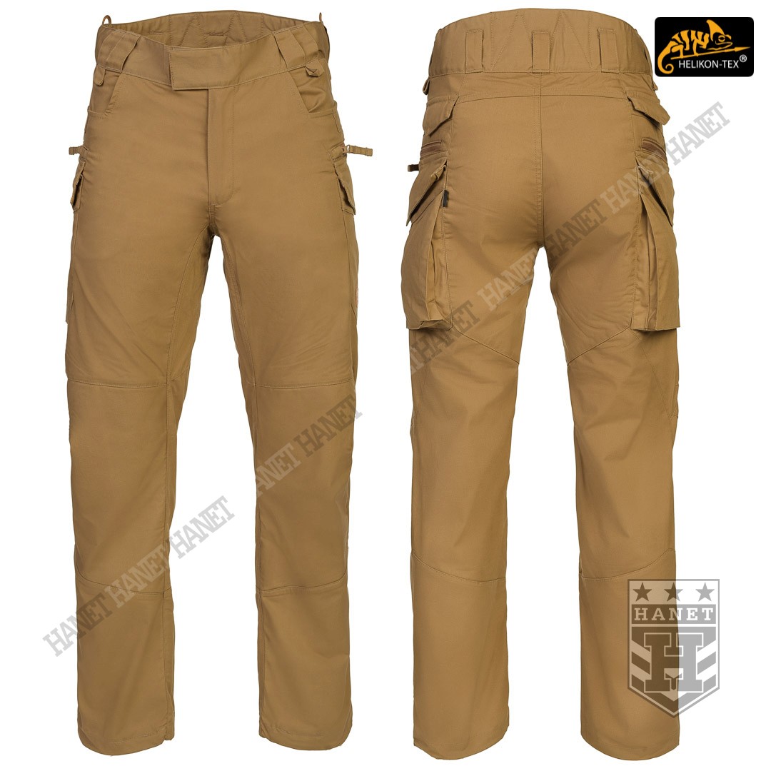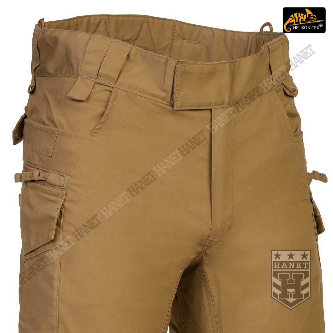 Uniwersalny krój gwarantuje praktyczność, komfort i dobry wygląd. Proste nogawki i płaskie kieszenie nie kojarzą się z typowymi bojówkami, dzięki czemu spodnie są doskonałe do noszenia na co dzień. Długi rozporek na zamek YKK®, kryty patką. Zapinane w pasie na patkę z rzepem, która umożliwia dostosowanie obwodu do anatomii użytkownika lub podczas noszenia bielizny ocieplającej pod spodniami. Pas i szlufki zostały uszyte z podwójnej warstwy materiału dla wzmocnienia. Spodnie posiadają przedłużenie z tyłu chroniące okolice krzyża i nerek podczas schylania oraz siedzenia. W przedłużonej części na plecach wszyto miękkie wypełnienie z oddychającej siatki dystansowej MESH 3D, która pozwala zachować komfort termiczny i komfort użytkowania wraz ze sztywnymi pasami. Gęsto rozmieszczone szlufki na pas o szerokości 50mm. Pod szlufkami bocznymi i przednimi doszyto pętle do troczenia podręcznych przedmiotów za pomocą linki lub karabinków (np. grimlock). Klin wszyty w kroku gwarantuje swobodę ruchów podczas wysokiego podnoszenia nóg. Pętle z linki Paracord wszyte na bokach służą do mocowania szelek (Helikon Forester Suspenders). U dołu nogawek znajdują się ściągacze pozwalające na zaciśnięcie nogawki na bucie. Ściągacze wykonane z elastycznej gumy typu Shock Cord, wyposażone w stoper do szybkiej regulacji oraz specjalny tunel zabezpieczający wolny końca ściągacza przed wystawaniem z nogawki.
