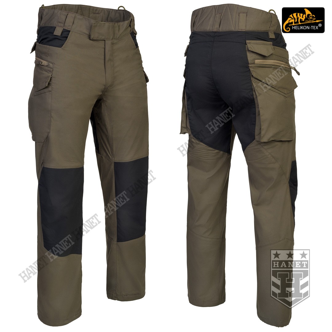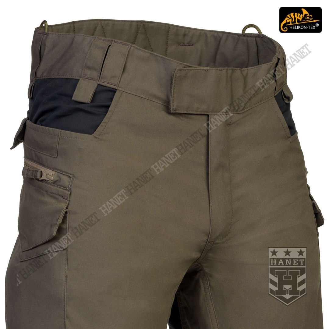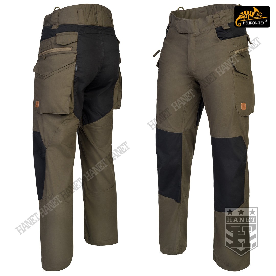 Uniwersalny krój gwarantuje praktyczność, komfort i dobry wygląd. Proste nogawki i płaskie kieszenie nie kojarzą się z typowymi bojówkami, dzięki czemu spodnie są doskonałe do noszenia na co dzień. Długi rozporek na zamek YKK®, kryty patką. Zapinane w pasie na patkę z rzepem, która umożliwia dostosowanie obwodu do anatomii użytkownika lub podczas noszenia bielizny ocieplającej pod spodniami. Pas i szlufki zostały uszyte z podwójnej warstwy materiału dla wzmocnienia. Spodnie posiadają przedłużenie z tyłu chroniące okolice krzyża i nerek podczas schylania oraz siedzenia. W przedłużonej części na plecach wszyto miękkie wypełnienie z oddychającej siatki dystansowej MESH 3D, która pozwala zachować komfort termiczny i komfort użytkowania wraz ze sztywnymi pasami. Gęsto rozmieszczone szlufki na pas o szerokości 50mm. Pod szlufkami bocznymi i przednimi doszyto pętle do troczenia podręcznych przedmiotów za pomocą linki lub karabinków (np. grimlock). Klin wszyty w kroku gwarantuje swobodę ruchów podczas wysokiego podnoszenia nóg. Pętle z linki Paracord wszyte na bokach służą do mocowania szelek (Helikon Forester Suspenders). U dołu nogawek znajdują się ściągacze pozwalające na zaciśnięcie nogawki na bucie. Ściągacze wykonane z elastycznej gumy typu Shock Cord, wyposażone w stoper do szybkiej regulacji oraz specjalny tunel zabezpieczający wolny końca ściągacza przed wystawaniem z nogawki.