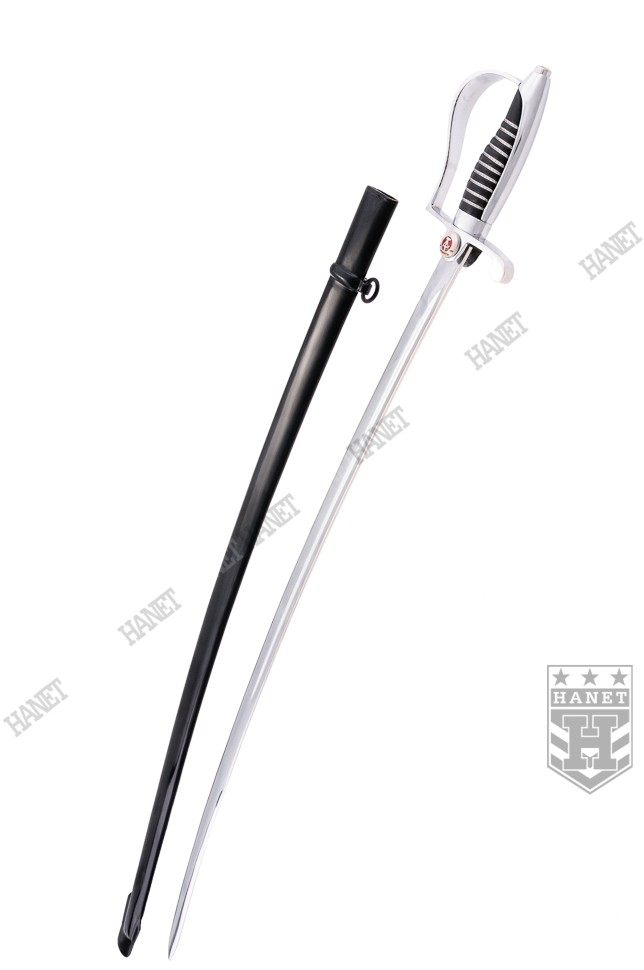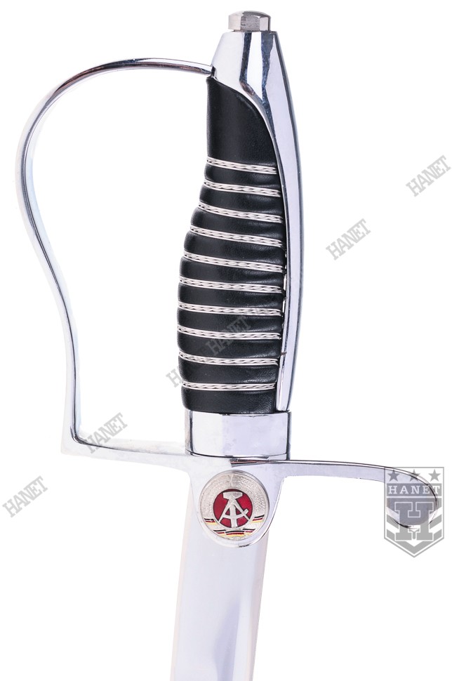Oryginalna szabla paradna NVA (Narodowa Armia Ludowa) – siły zbrojne NRD. Całkowicie nowa, stan magazynowy. Wykorzystywana przez kompanie reprezentacyjne podczas uroczystości państwowych. Rzadki okaz kolekcjonerski. W całości wykonana z wysokogatunkowej kutej stali. Klinga ze zbroczem ze stali polerowanej. Kabłąk i głowica również ze stali polerowanej. Rękojeść obciągnięta skórą naturalną i zdobiona metalowym drutem. Pochwa wykonana z metalu szlachetnego, lakierowana na kolor czarny. Wyposażona w oczko do zawieszenia na pasie