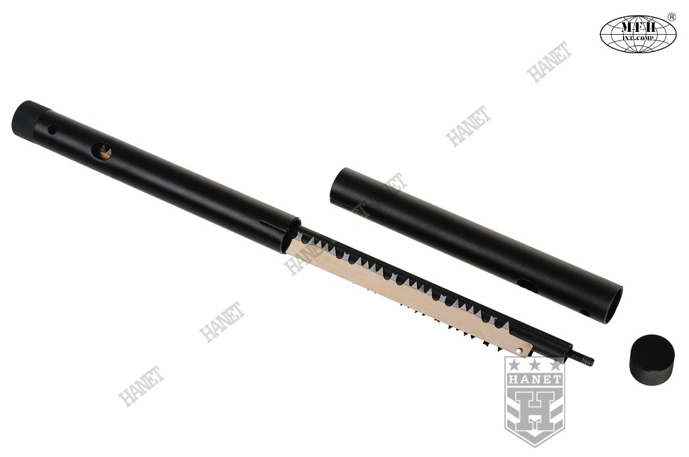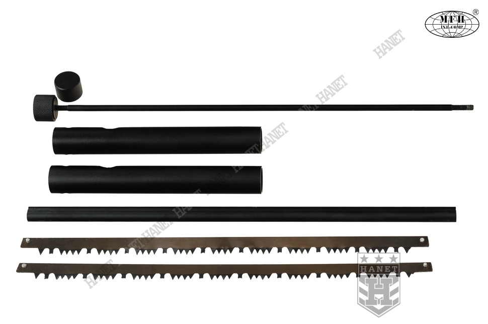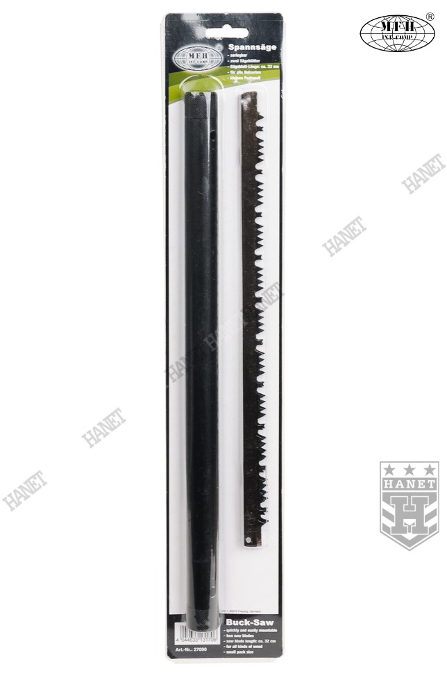 Uniwersalna piła ręczna o specyfikacji militarnej, produkt niemieckiej firmy MFH Int. Comp. Piła gwarantuje szybkie i precyzyjne cięcie, dorównujące wydajnością piłom warsztatowym. Polecana do survivalu, outdooru, offroadu, na biwaki oraz w ogrodnictwie. Przystosowana do cięcia drewna, gałęzi, pni, a także tworzyw i lodu.