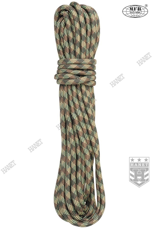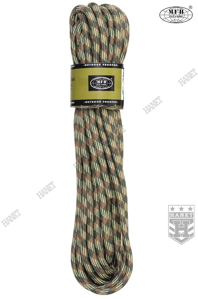Wytrzymała linka o specyfikacji militarnej, produkt niemieckiej firmy MFH Int. Comp. Wykonana w z nylonu. Solidny oplot i gruby, pleciony rdzeń gwarantują niezwykłą wytrzymałość przy bardzo niskiej wadze. Linka jest dynamiczna, co oznacza zwiększoną odporność na gwałtowne obciążenia. Stanowi niezbędne wyposażenie każdego komandosa i miłośnika outdooru.
