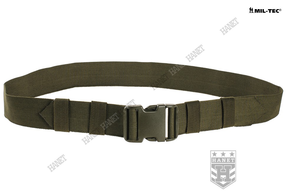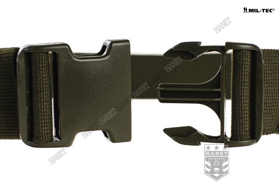 Profesjonalny pasek taktyczny. Produkt niemieckiej firmy Mil-Tec®. Specyfikacja militarna gwarantuje solidność i niezawodność. Pasek przeznaczony do spodni, doskonały do lekkiego oporządzenia. Pasuje do szlufek współczesnych spodni wojskowych - 50 mm. Solidna lecz miękka plecionka (100% poliester) gwarantuje wygodę i swobodę ruchów. Pas przepuszcza powietrze co zwiększa komfort termiczny. Solidna klamra z termoplastycznego polimeru POM - Polioksymetylenu. POM charakteryzuje się wysoką elastycznością, duża wytrzymałością na rozciąganie, odpornością na ścieranie i agresywne chemikalia. Polimer wykazuje właściwości samosmarujące (cząstki pokryte są związkiem smarującym). Szybka regulacja obwodu. Końcówka pasa o ściętym kształcie, ułatwia przełożenie prze klamrę. Cztery ruchome szlufki zabezpieczają wolny koniec pasa. System Quick Release (QR) umożliwia szybkie zrzucenie pasa.