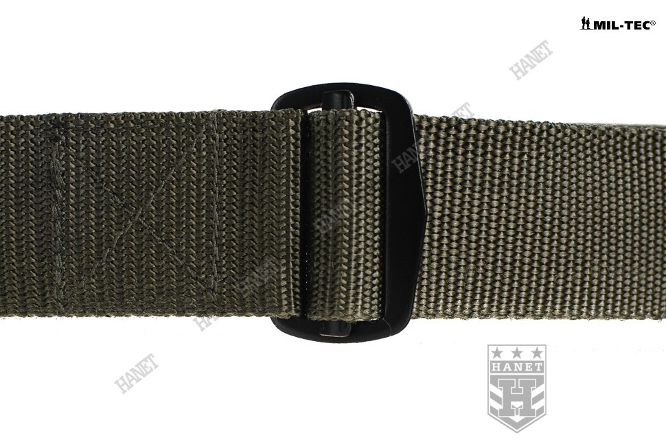 Nowoczesny pasek parciany BDU Belt US Army. Doskonały do spodni, a także do kabur i lekkiego oporządzenia. Bardzo solidny i niezawodny, specyfikacja militarna gwarantuje wysoką jakość. Wykonany z wytrzymałej plecionki 100% nylon, grubej i bardzo wytrzymałej. Solidna klamra stalowa, czerniona. Solidna klamra stalowa podobna do tej z uprzęży wspinaczkowych, trzyma pewnie i nie ma problemów z rozpięciem. Bardzo łatwa, płynna i szybka regulacja obwodu, możliwość stałego skrócenia pasa. Elastyczna szlufka pozwala zabezpieczyć wolny koniec pasa. Metalowe elementy nierdzewne, czernione.