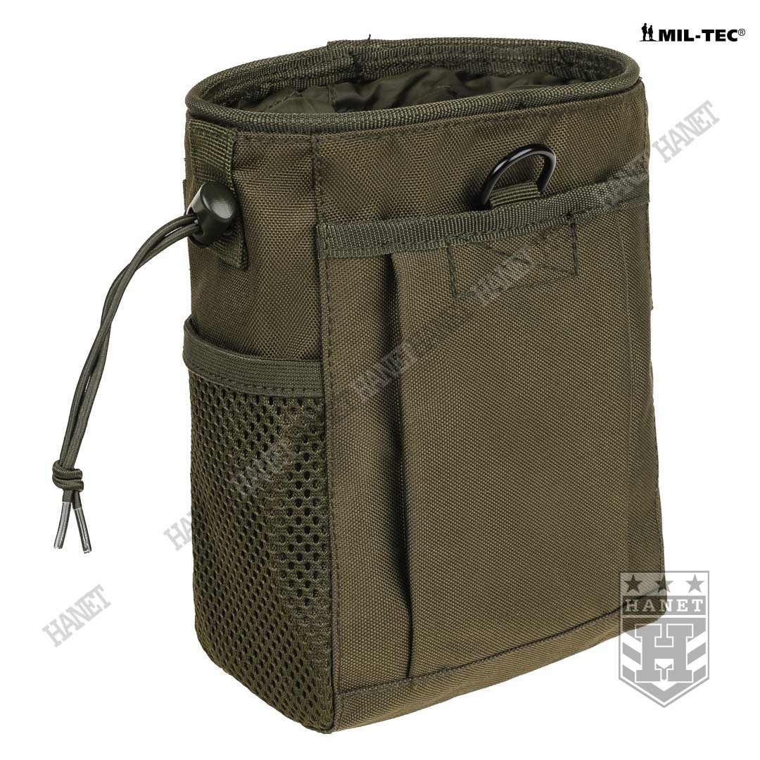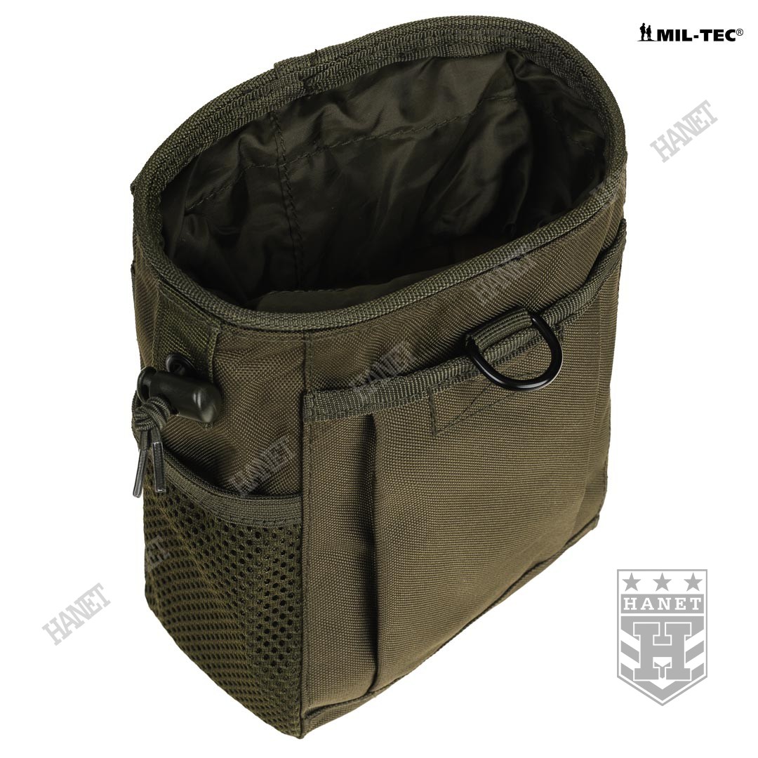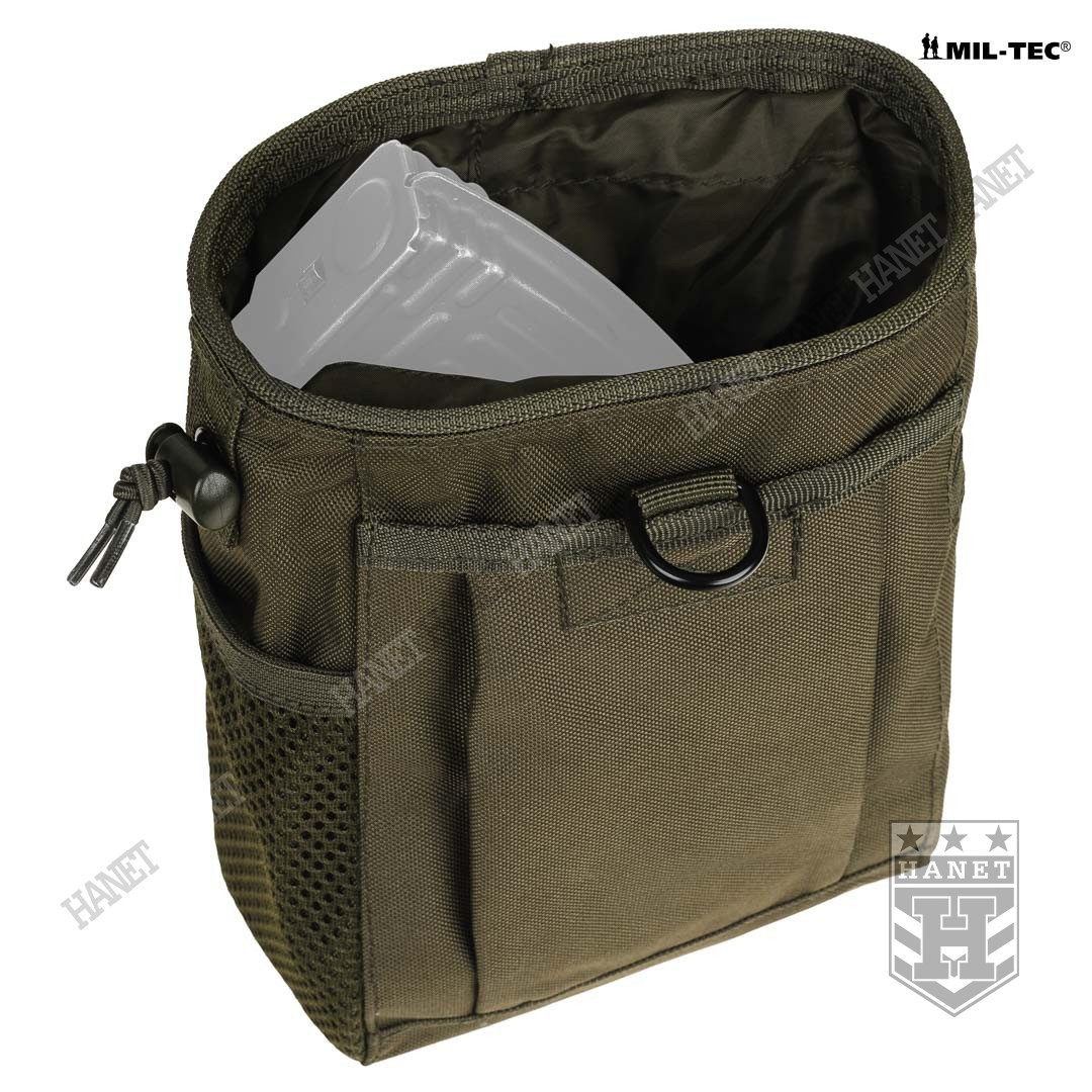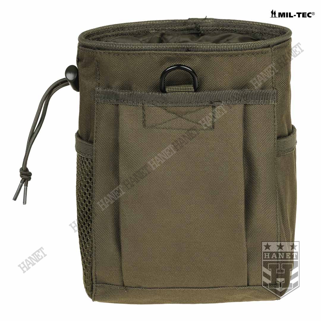 Torba zrzutowa pozwala na szybkie i instynktowne chowanie magazynków lub innych przedmiotów. Gardło worka zostało usztywnione profilem z elastycznego tworzywa (o okrągłym przekroju), który gwarantuje szerokie rozwarcie kieszeni i łatwy dostęp do wnętrza. Krawędź górna jest wzmocniona taśmą parcianą, dla zabezpieczenia przed przecieraniem. Komora zamykana jest za pomocą komina z gumą Bungee Cord i stoperem. Popularny system MOLLE / PALS pozwala na mocowanie kieszeni na panelach modularnych. Pionowe taśmy mocujące zostały usztywnione, co umożliwia montaż worka bezpośrednio na zwykłym pasie.