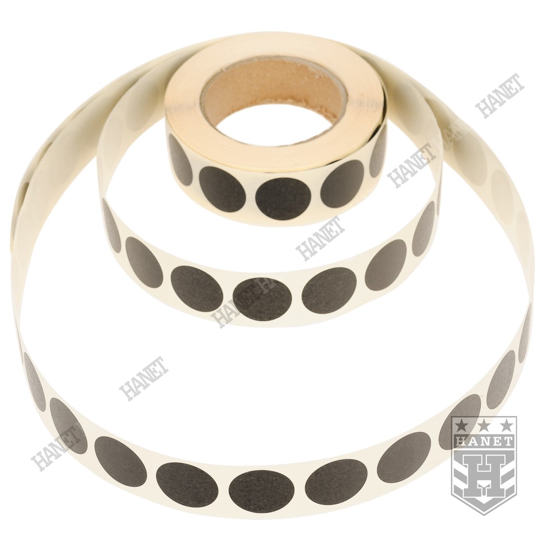 Kolor zaklejek zlewa się z tarczami kartonowymi, dzięki matowemu pokryciu nie ma wyraźnych różnic w świetle tarcz. Mocny klej zapewnia dobre trzymanie, także w warunkach wilgoci i niskich temperatur. Wąska taśma ułatwia odklejanie pojedynczych sztuk. Zaklejki nawinięte na wygodną rolkę kartonową, otwór o średnicy dopasowanej do palców. Zapakowane w wodoodporne opakowanie.