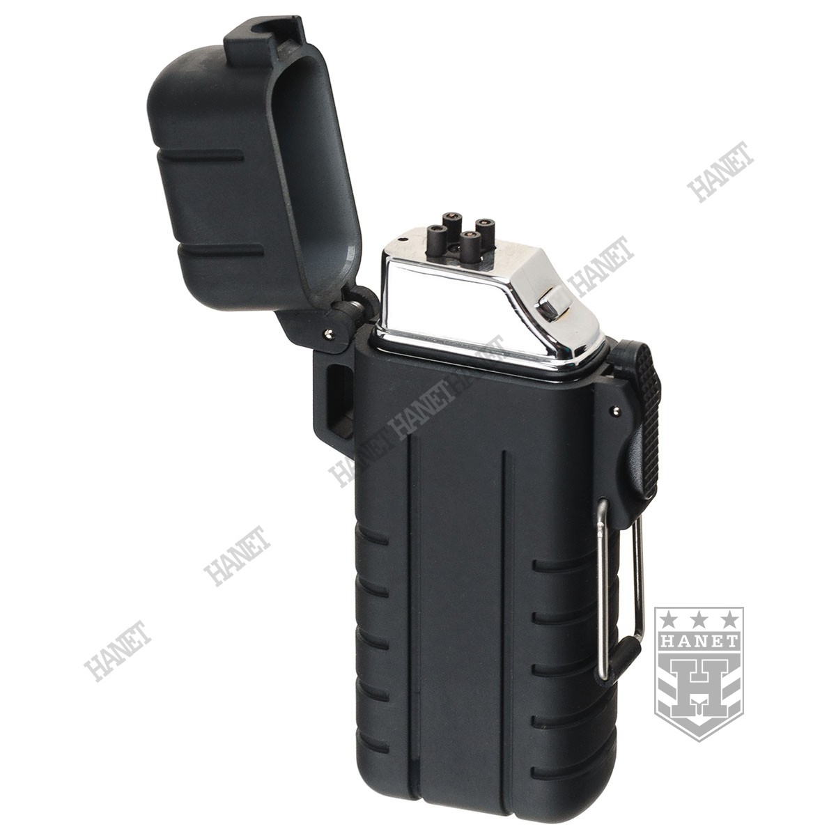 Solidna, wodoodporna konstrukcja z twardego polimeru i metalu. Ergonomiczny kształt gwarantuje, że zapalniczka świetnie leży w dłoni. Antypoślizgowa faktura ułatwia obsługę zapalniczki w rękawicach lub mokrymi i zmarzniętymi dłońmi. Bezpieczny system podwójnego zamknięcia chroni przed przypadkowym otwarciem zapalniczki. Wygodny przycisk główny z antypoślizgową fakturą i mechanizmem sprężynowym. Dodatkowa blokada z gumową rolką. Wieczko po zwolnieniu przycisku otwiera się automatycznie, jest wyposażone w sprężynę. Gumowe D-ringi chronią przed penetracją wody. Uszko na smycz lub pętlę nadgarstkową. W komplecie długa, odpinana smycz i kabel do ładowania. Zapalniczka zapakowana w estetyczne pudełko.