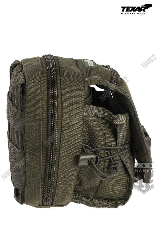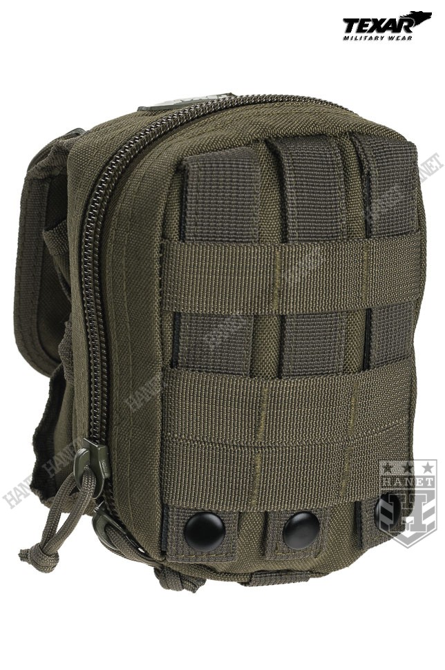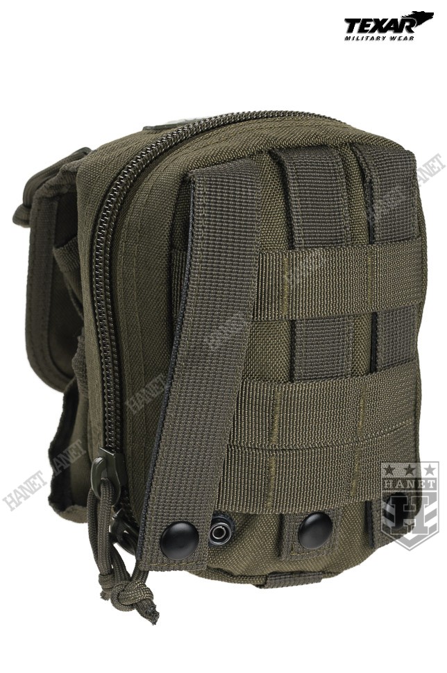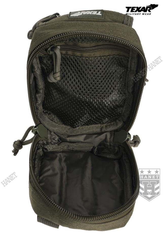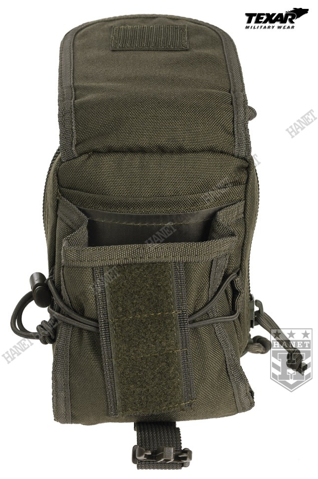 Kieszeń wielozadaniowa w systemie montażowym MOLLE 25 mm. Integralna część oporządzenia taktycznego montowana zazwyczaj do kamizelki operacyjnej, panelu udowego lub plecaka. Polecana profesjonalistom — doceniona przez kontyngenty na bliskim wschodzie. Doskonała do bezpiecznego przechowywania i organizacji drobnego ekwipunku, do którego musimy mieć łatwy dostęp. Przystosowana do specyfiki pracy dowódców drużyn i patroli. Wyposażona w kieszenie na GPS, telefon, iPod'a lub aparat. Idealna do przedmiotów podręcznych jak np. rękawiczki, kominiarka, nóż, multitool, latarka, klucze, stopery itd. Znajdzie szerokie zastosowanie jako np. portfel, apteczka osobista, zasobnik survivalowy, kieszeń na małą rację żywnościową lub radiotelefon z zapasową baterią i akcesoriami. System kieszeni i przegród do organizacji umieszczonych w zasobniku przedmiotów — każdy element wyposażenia znajdzie nim swoje miejsce. Całość wykonana z mocnego wodoodpornego poliestru 1000D, grube szycia gwarantują długowieczność użytkowania. Główna kieszeń zamykana na dwukierunkowy ekspres. Wewnątrz kieszeń z siatki zamykana na zamek. Od frontu naszyta kieszeń z regulacją wysokości i pojemności, zamykana na regulowaną taśmę z klamrą — idealna na radiotelefon lub GPS z antenką. Trzy przegrody pozwalają aranżować przestrzeń dowolnie. Odpinane taśmy montażowe zostały usztywnione, dzięki czemu zasobnik pewnie się trzyma. Solidne nierdzewne napy. Krawędzie obszyte lamówką, dodatkowe taśmy montażowe 25 mm. Na froncie zasobnika znajduje się mała kieszonka płaska z naszytym rzepem.