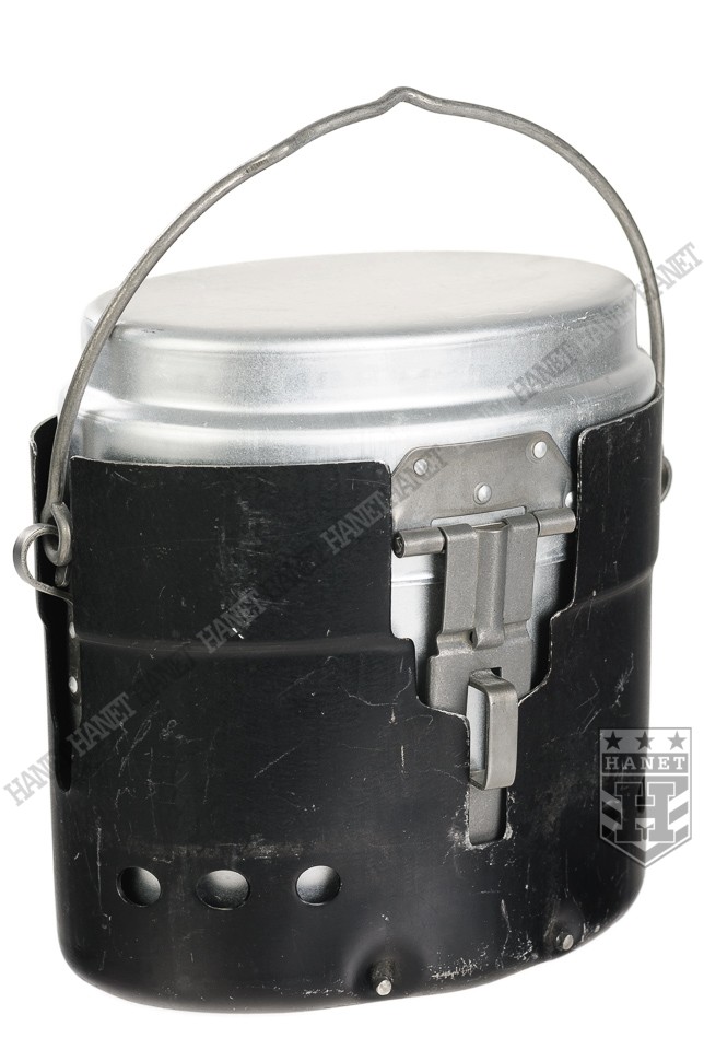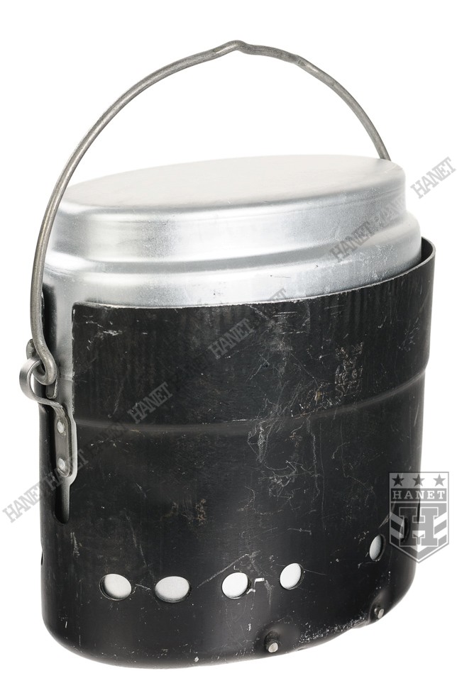 Polowy zestaw do gotowania (kuchenka) wzór Armii Szwedzkiej. Produkt niemieckiej firmy Mil-Tec®. Kompletny zestaw umożliwiający przygotowanie gorącego posiłku w warunkach polowych: menażka, kocher spirytusowy, osłona przed wiatrem z rusztem i butelka na zapas alkoholu. Niezbędny element wyposażenia nie tylko żołnierza ale także każdego survivalowca, miłośnika outdooru i turystyki pieszej. Solidna menażka wykonana wykonana z wysokogatunkowego aluminium, nie koroduje, nie przypala się i doskonale przewodzi ciepło. Dwuczęściowa - doskonała do przenoszenia żywności, gotowania wody na herbatę lub przyrządzania posiłków. Duże naczynie wyposażone ruchomy kabłąk (rączkę) - przystosowane do zawieszania nad ogniem, możliwość gotowania bezpośrednio w żarze. Przykrywka spełnia także rolę patelni lub kubka. Wyposażona w składaną rączkę pełniącą jednocześnie funkcję zamknięcia menażki. Oryginalny kocher spirytusowy Armii Szwedzkiej, doskonały do przygotowania ciepłych posiłków i napojów bez konieczności rozpalania ogniska. Wykonany z miedzi (nierdzewny), zakręcane wieko z uszczelką gumową. Jako paliwa używa się denaturatu lub spirytusu, w sytuacjach awaryjnych można użyć rozpuszczalnika, benzyny lub innej łatwopalnej cieczy. Pod wpływem podgrzania spirytusu opary alkoholu wydostają się pod ciśnieniem - podobnie jak w kuchence gazowej. Stalowa osłona wyposażona w wewnętrzny, rozkładany ruszt na którym ustawiana jest menażka - nie trzeba organizować stelaży do zawieszenia menażki nad ogniem. Osłona zabezpiecza nawet przed silnym wiatrem i zmniejsza do minimum utratę ciepła - większa temperatura skraca czas gotowania. Otwór w dnie umożliwia położenie kuchenki bezpośrednio na palniku. Możliwość gotowania potraw na parze. Całość składana w jeden element wielkości menażki, ergonomiczny kształt - zmieści się w każdym plecaku. Kuchenka całkowicie bezdymna, naczynie pozostaje z zewnątrz czyste. Daje niewiele światła - niewidoczny w nocy. W komplecie oryginalna butelka na zapas paliwa (alkoholu).