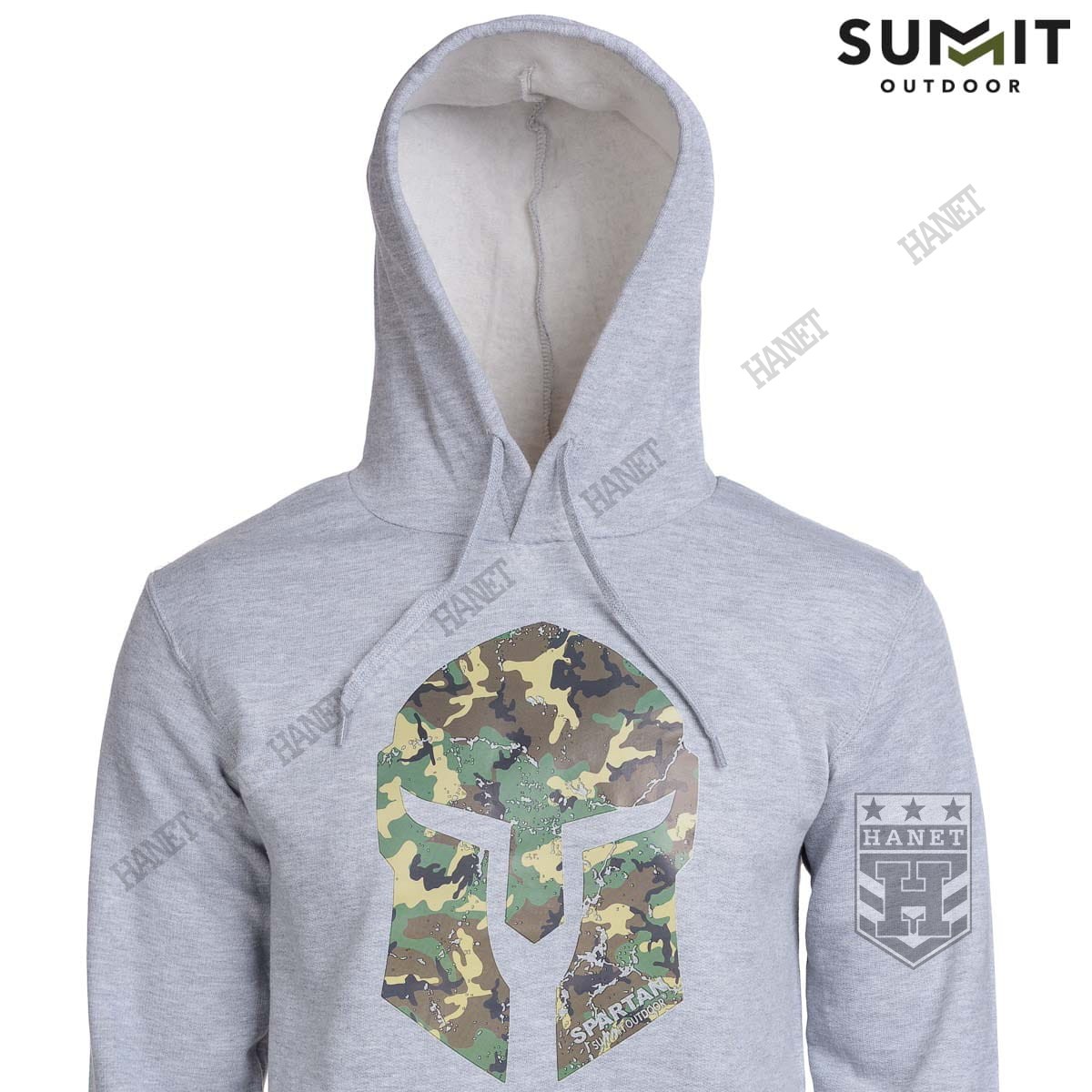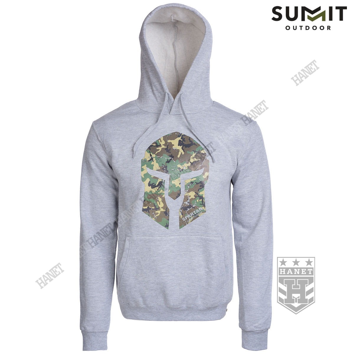 Bluza z Kapturem Bawełniana Sportowa Summit z Nadrukiem Spartan Szara