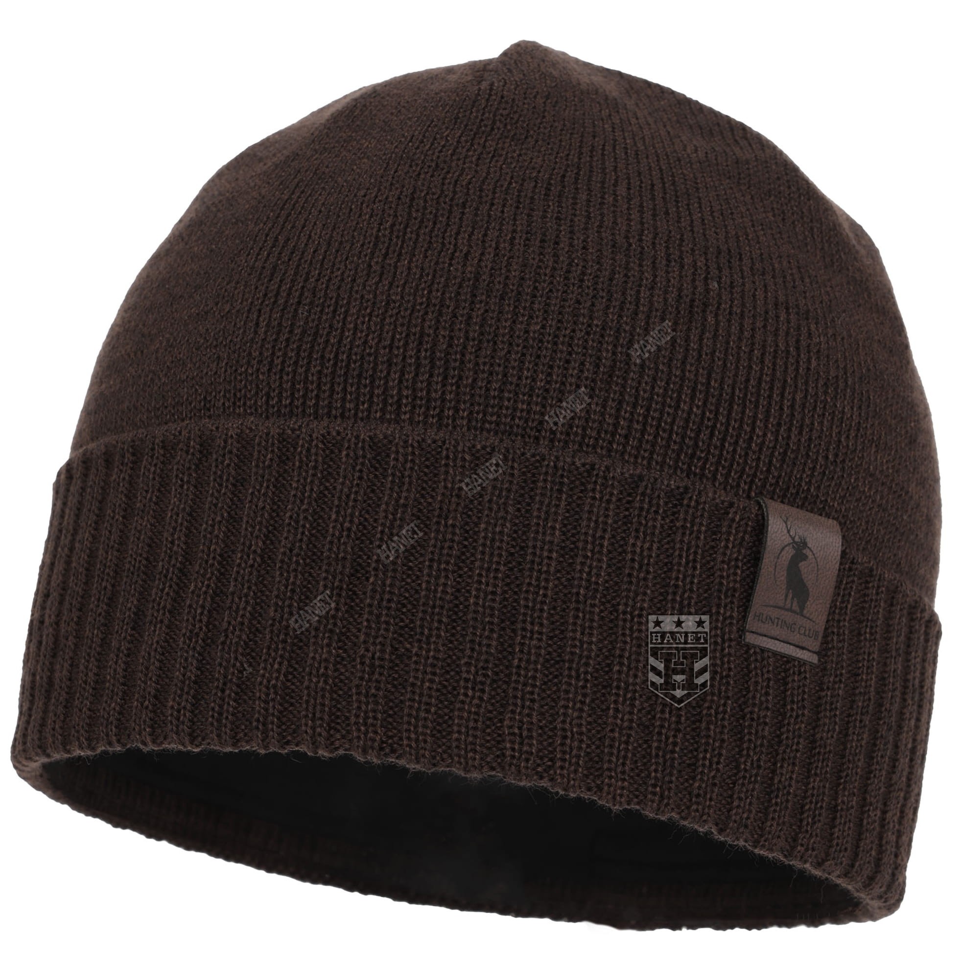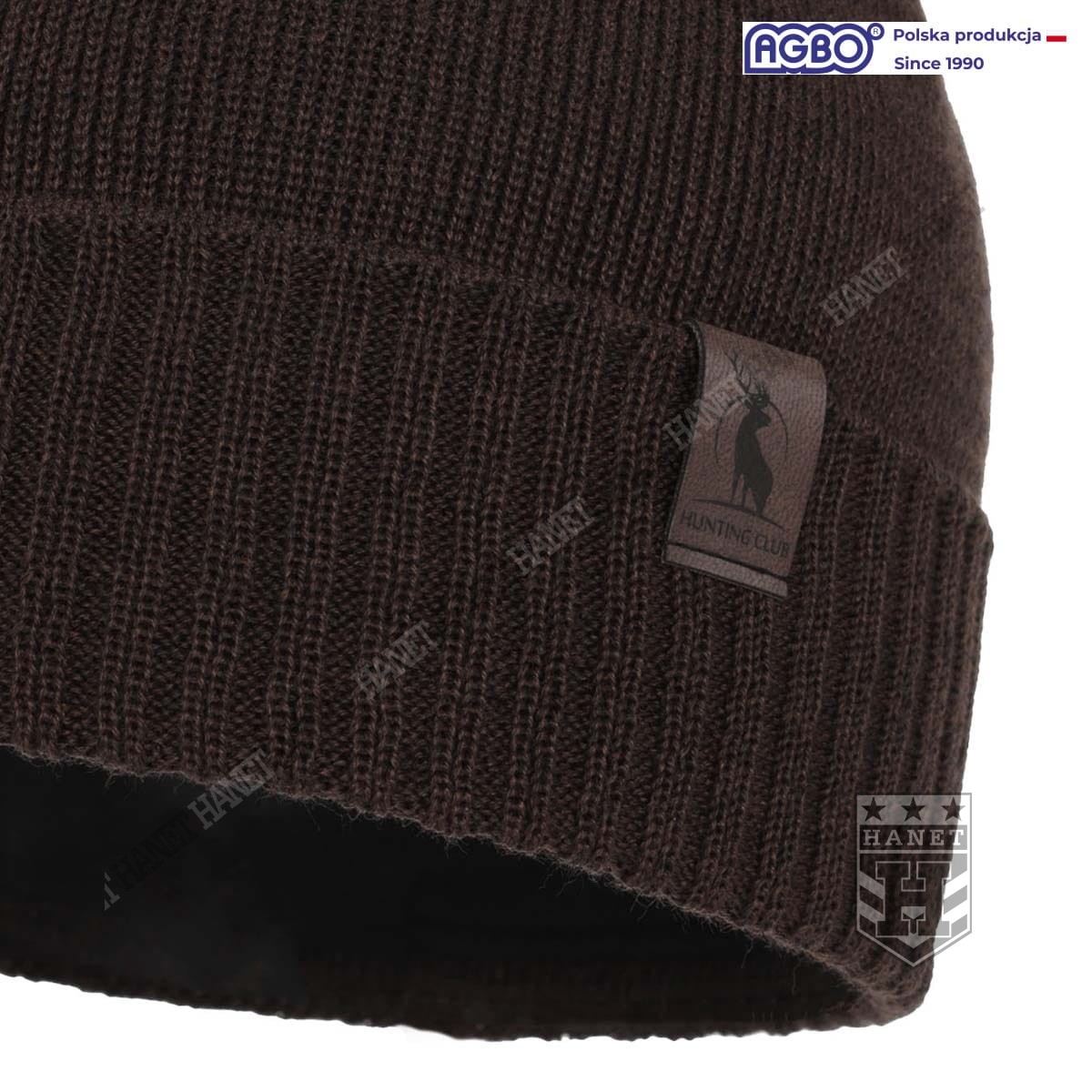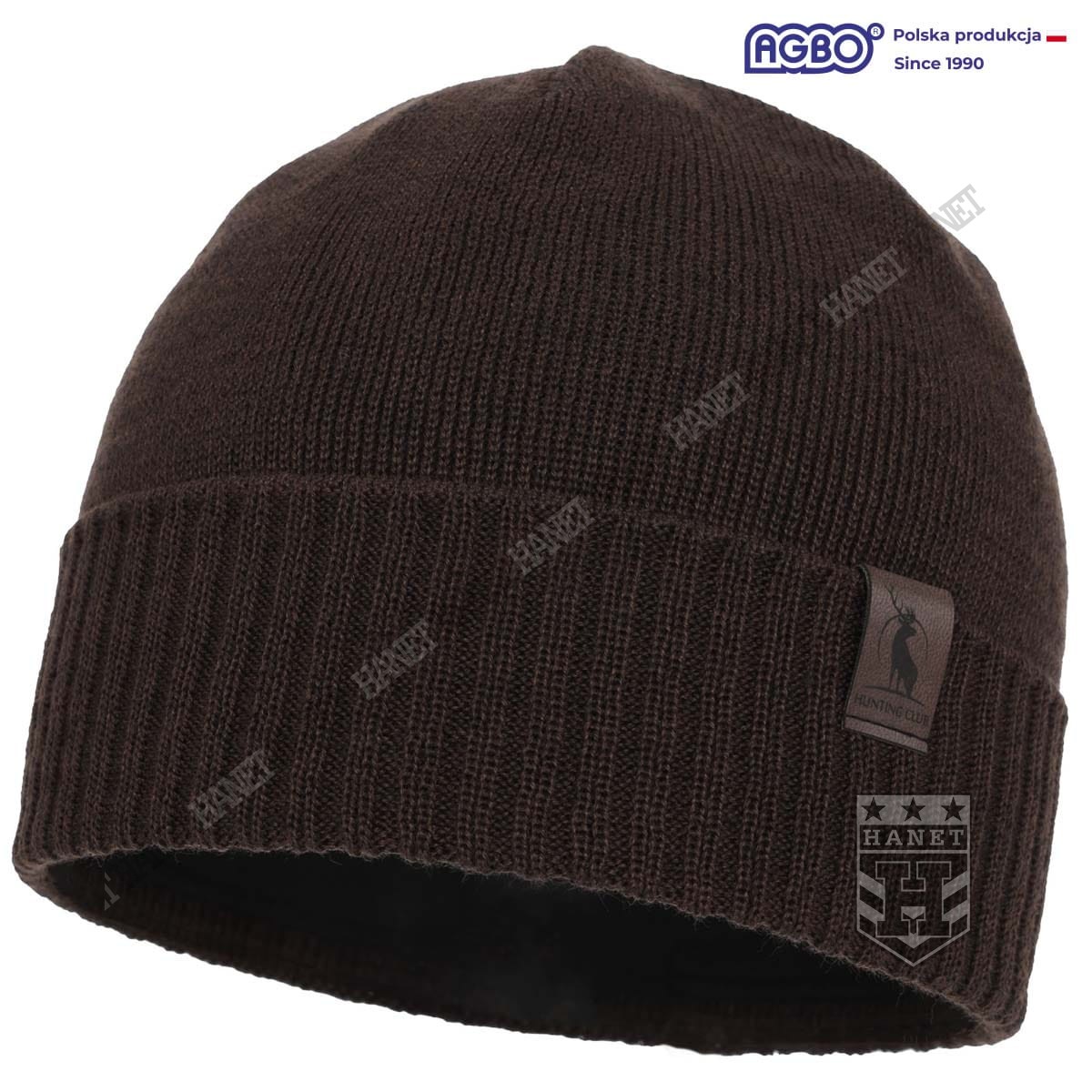 Czapka Zimowa Męska HOGAN z Wełną Merino i Polarem - Brązowa, Myśliwska, AGBO