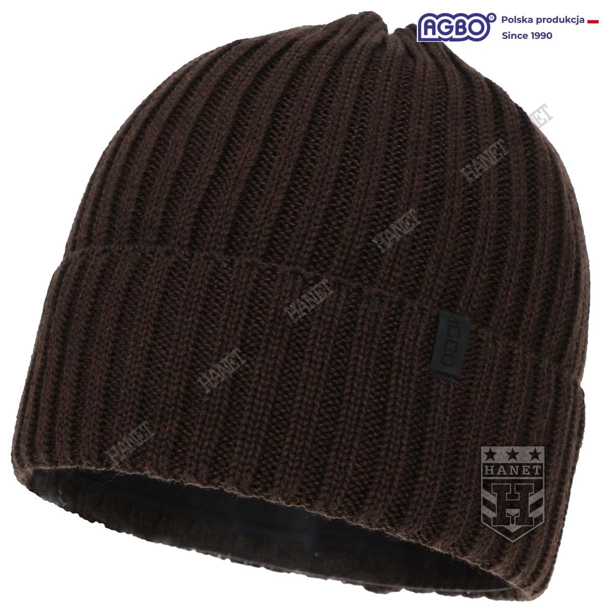 Czapka Zimowa Męska AGBO Tyrol - Wełna Merino, Polar - Brązowa