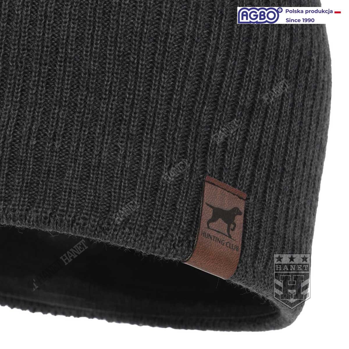 Czapka Zimowa Męska Stylowa AGBO BIRD - Merino, Polar, Ciemno Szara
