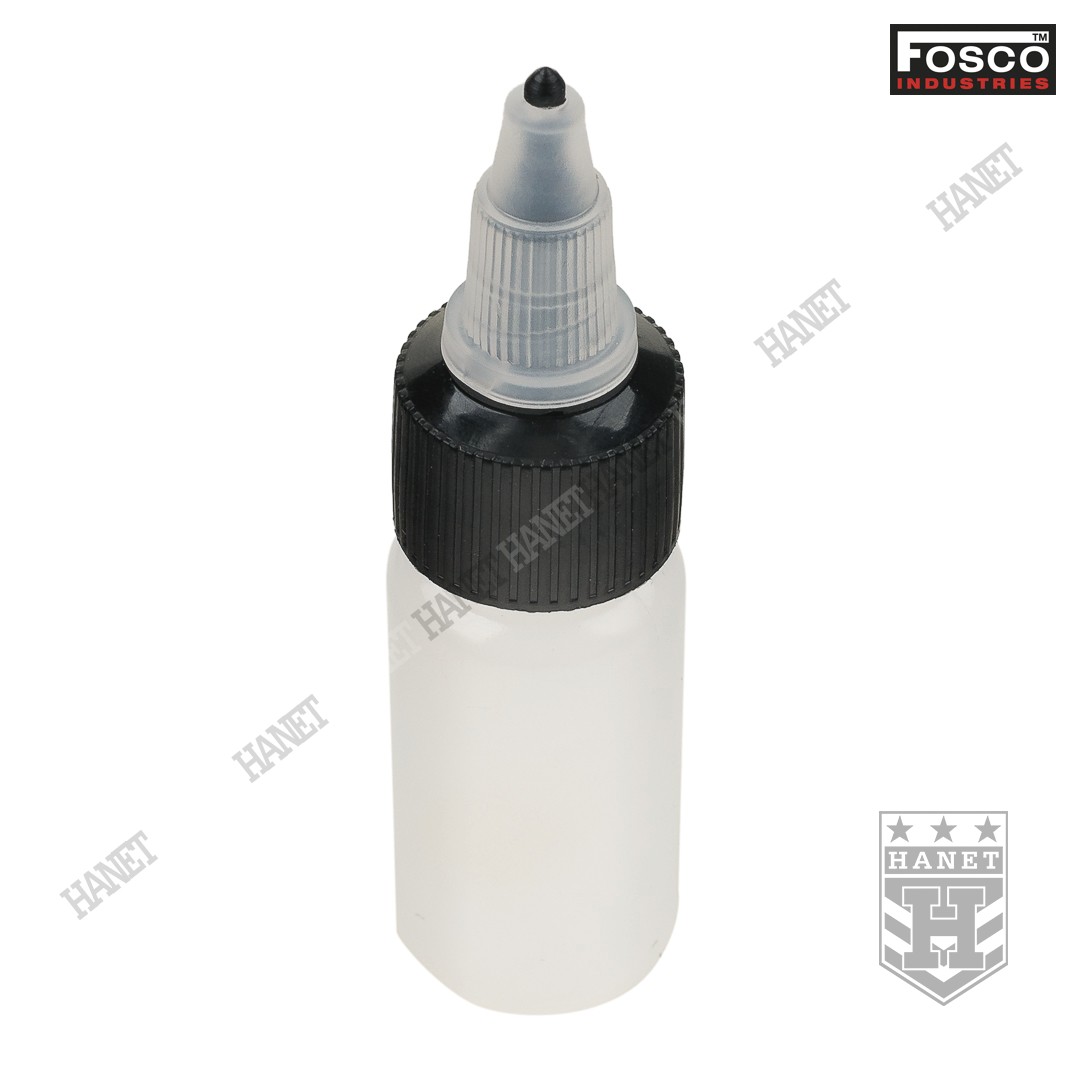 Oliwiarka do broni wzór US Army. Butelka na olej została wykonana z elastycznego tworzywa, które pozwalana ściskanie pojemnika by uzyskać mocniejszy wypływ oleju. Przeźroczysty plastik umożliwia wzrokową kontrolę pozostałej ilości lub rodzaju oleju. Dozownik z wąską końcówką do precyzyjnego nakładanie oleju, nawet w trudno dostępne miejsca. Odkręcane zabezpieczenie daje możliwość regulacji przepływu oleju. Możliwość ciągłego lania lub delikatnego kropelkowania. Szczelne zamknięcie gwarantuje zabezpieczenie przed wyciekiem nawet po ściśnięciu pojemnika. Tworzywo odporne na wszystkie rodzaje olejów.