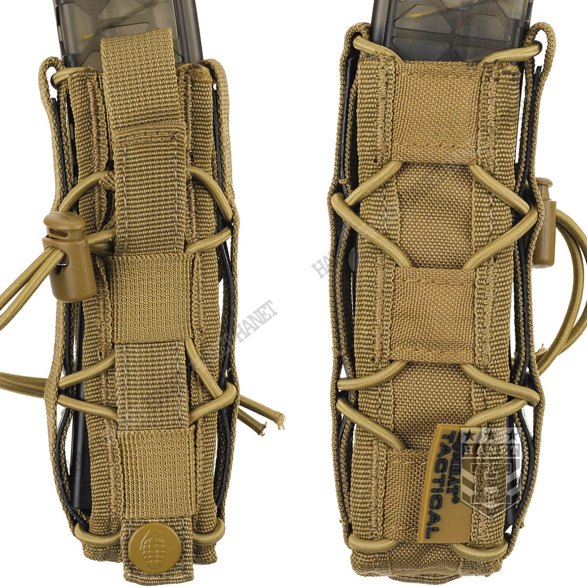 Ładownica została uszyta z dwóch warstw wytrzymałego i jednocześnie lekkiego materiału 600D Tac-Poly. Wszystkie krawędzie są wykończone taśmą nylonową dla zabezpieczenia przed przecieraniem materiału. Wytrzymałe szwy, wielokrotne przeszycia w newralgicznych miejscach. Ścianki ładownicy są na stale połączone tylko u dołu, system gum Bungee (Shock Cord) spina boki ładownicy. Po ściągnięciu gum Bungee można dostosować ładownicę do wielkości lub kształtu magazynka oraz regulować opór jego wyciągania. Gumy regulacyjne są blokowane za pomocą stopera w tylnej części ładownicy.