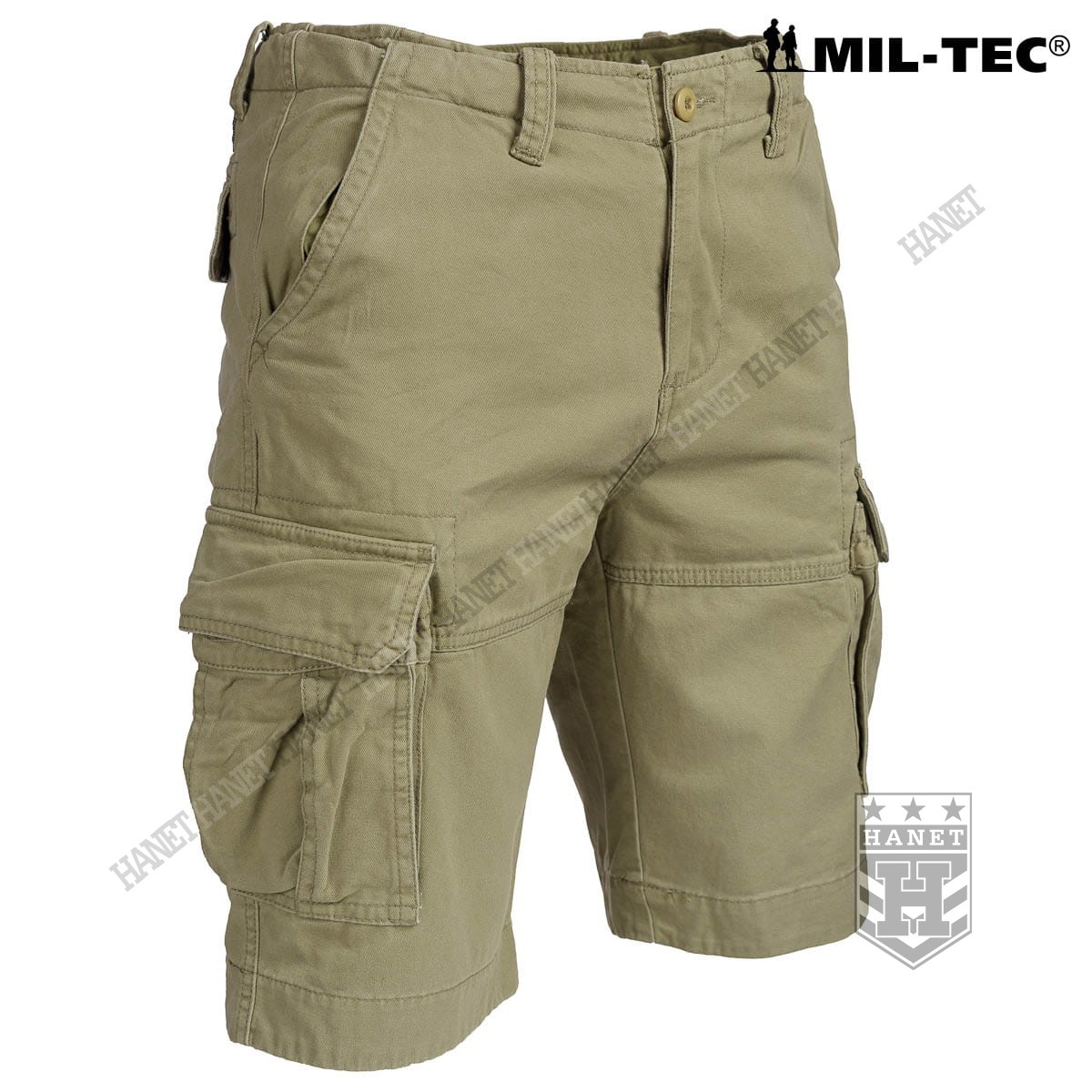 Stylowe spodenki z najnowszej kolekcji niemieckiej firmy Mil-Tec, model VINTAGE SHORTS PREWASH. Produkt charakteryzuje się świetnym designem i wykonaniem z naciskiem na dbałość o szczegóły. Niezliczone przeszycia, detale nadające spodniom niezwykłego charakteru. Klasyczny wzór szortów o charakterze militarnym - wprowadzony na potrzeby spadochroniarzy US Army. Doskonały krój zapewnia wygodę, funkcjonalność i świetny wygląd w każdej sytuacji. Przeznaczone dla ludzi aktywnych lubiących wyróżniać się na ulicy. Wytrzymały a jednocześnie estetyczny i miły w dotyku materiał 100% bawełna. Vintage Prewash to nowoczesny trend w modzie - fabryczne postarzenie materiału (delikatnie sprane). Sześć funkcjonalnych kieszeni w tym dwie pojemne typu cargo. Rozporek zamykany na metalowy ekspres. Kieszenie boczne i tylne zamykane na guziki. Wewnętrzny ściągacz w pasie.