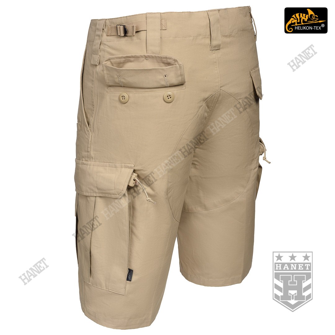 Krótka wersja spodni taktycznych CPU®. Szorty są wzorowane na umundurowaniu WP wz.2010, zostały jednak wzbogacone o szereg praktycznych rozwiązań. Krój szortów CPU® jest bardzo funkcjonalny, spodenki posiadają rozbudowany system ośmiu kieszeni. Kilkukrotna zakładka materiału w pasie daje komfort podczas noszenia sztywnych pasków taktycznych. Wzmacniane szlufki na pas o szerokości do 60 mm. Dodatkowe pętelki przy 4 przednich szlufkach pozwalają na troczenie podręcznych przedmiotów lub założenie karabinka. Spodenki posiadają możliwość regulacji obwodu pasa za pomocą bocznych tasiemek z metalowymi regulatorami i dostosowania go do sylwetki. Rozporek zapinany klasycznie na guziki kryty patką. Siedzenie i okolice kroku zostało obszyte dodatkową warstwą materiału dla wzmocnienia.