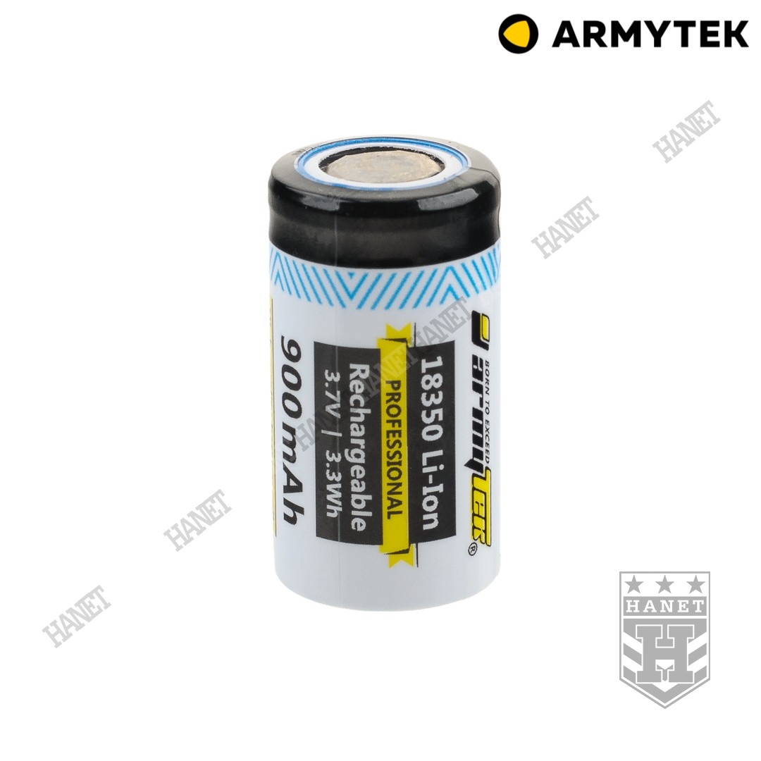 Latarka jest zasilana wysokiej klasy akumulatorem Li-Ion 18350 900mAh, 3,7V, 3,3Wh. Ogniwo jest pozbawione zabezpieczenia PCB, dzięki czemu może pracować pod dużym obciążeniem. Latarka nie wymaga PCB ponieważ sama posiada rozwinięte zabezpieczenia. Nowy standard ogniw z płaskimi biegunami. Zabezpieczenie przeciwwybuchowe i samodzielny systemem ograniczenia temperatury, zamontowane w ogniwie. Kompaktowa ładowarka magnetyczna ze złączem USB, umożliwia ładowanie pod komputerem, powerbankiem, ładowarką smartfona lub samochodową. Szybka ładowarka posiada wbudowane diody informujące o stanie ładowania lub złym podłączeniu do gniazda latarki. Naładowanie akumulatora do pełna trwa zaledwie 1h.