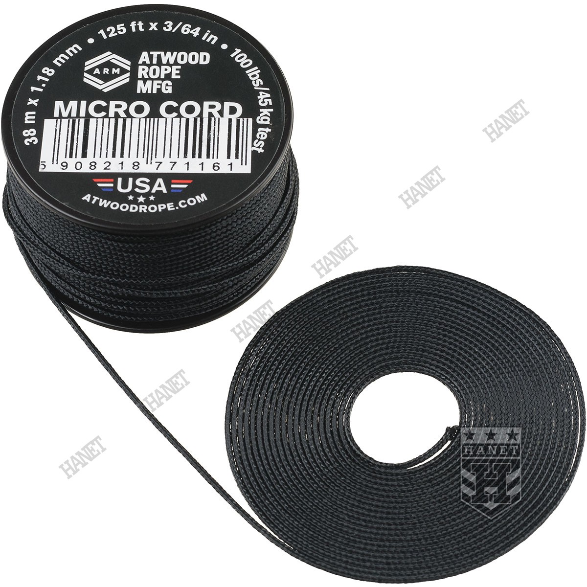 Cienka Linka Pomocnicza Micro Cord Atwood USA - 1,18mm 46kg 38m - Czarna