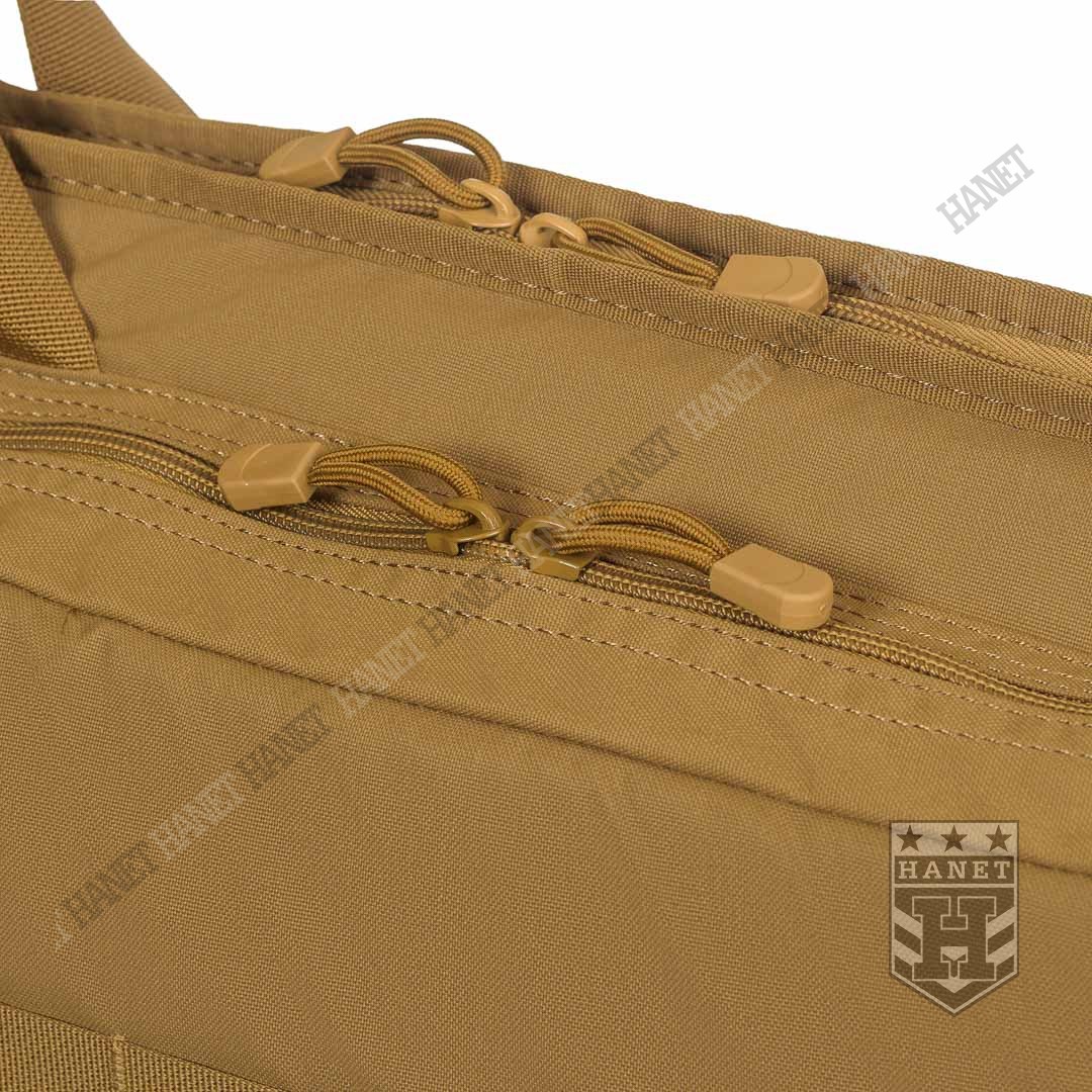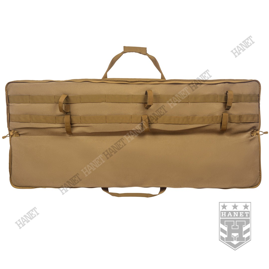 Usztywniany pokrowiec transportowy na broń. Pokrowiec umożliwia jednoczesne przenoszenie 1/2 jednostek broni długiej (2 strzelby lub sztucery) oraz karabinka lub PCC. Polecany strzelcom sportowym i taktycznym, idealny na strzelnicę i zawody 3 Gun. Pokrowiec został wyposażony w uchwyt walizkowy i pas na ramię. Regulowany system taśm mocujących broń pozwala dostosować paski do konkretnego modelu broni. System ładownic i elastycznych organizerów na magazynki i akcesoria. Rozłożony pokrowiec może służyć za matę strzelecką. Duży panel MOLLE pozwala rozbudować pokrowiec o dodatkowe kieszenie i ładownice.