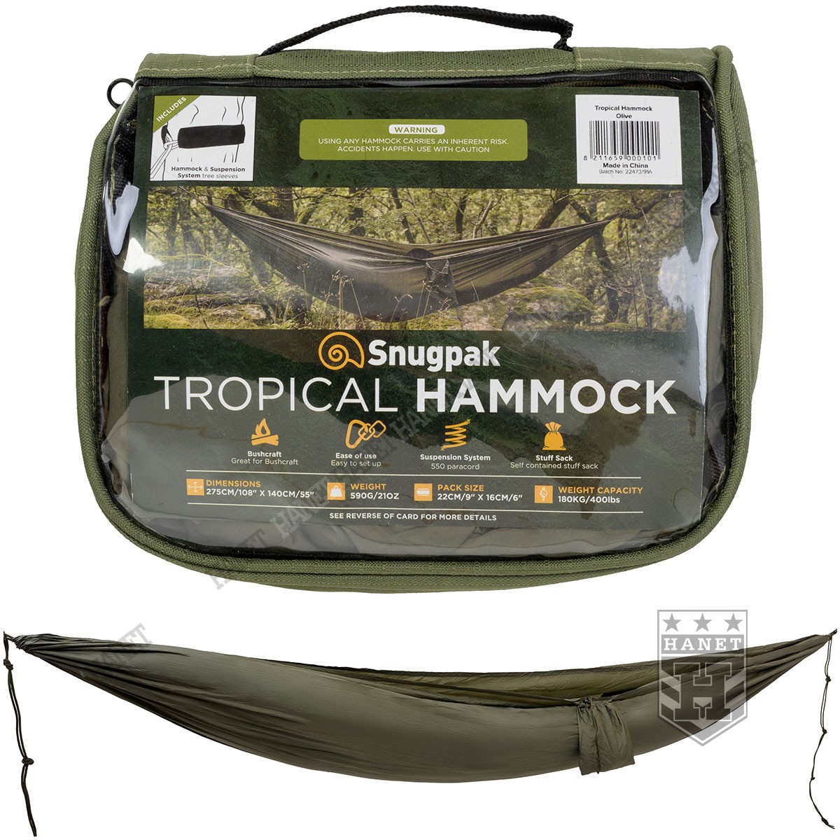 Lekki hamak do użytku profesjonalnego. Doskonały by zapewnić suche, wygodne i bezpieczne miejsce do spania, nawet w najtrudniejszym terenie (zbocza gór, mokradła, nierówny i twardy teren). Hamak jest świetny również do zastosowań cywilnych, sprawdzi się na działce, kempingu oraz na łodzi. Niezwykła wytrzymałość, łatwość w zawieszaniu, niewielkie gabaryty i niska masa to jego główne zalety. Hamak uchroni przed dziką zwierzyną, tropikalnymi gadami, płazami i pajęczakami oraz podtopieniem podczas gwałtownej ulewy.