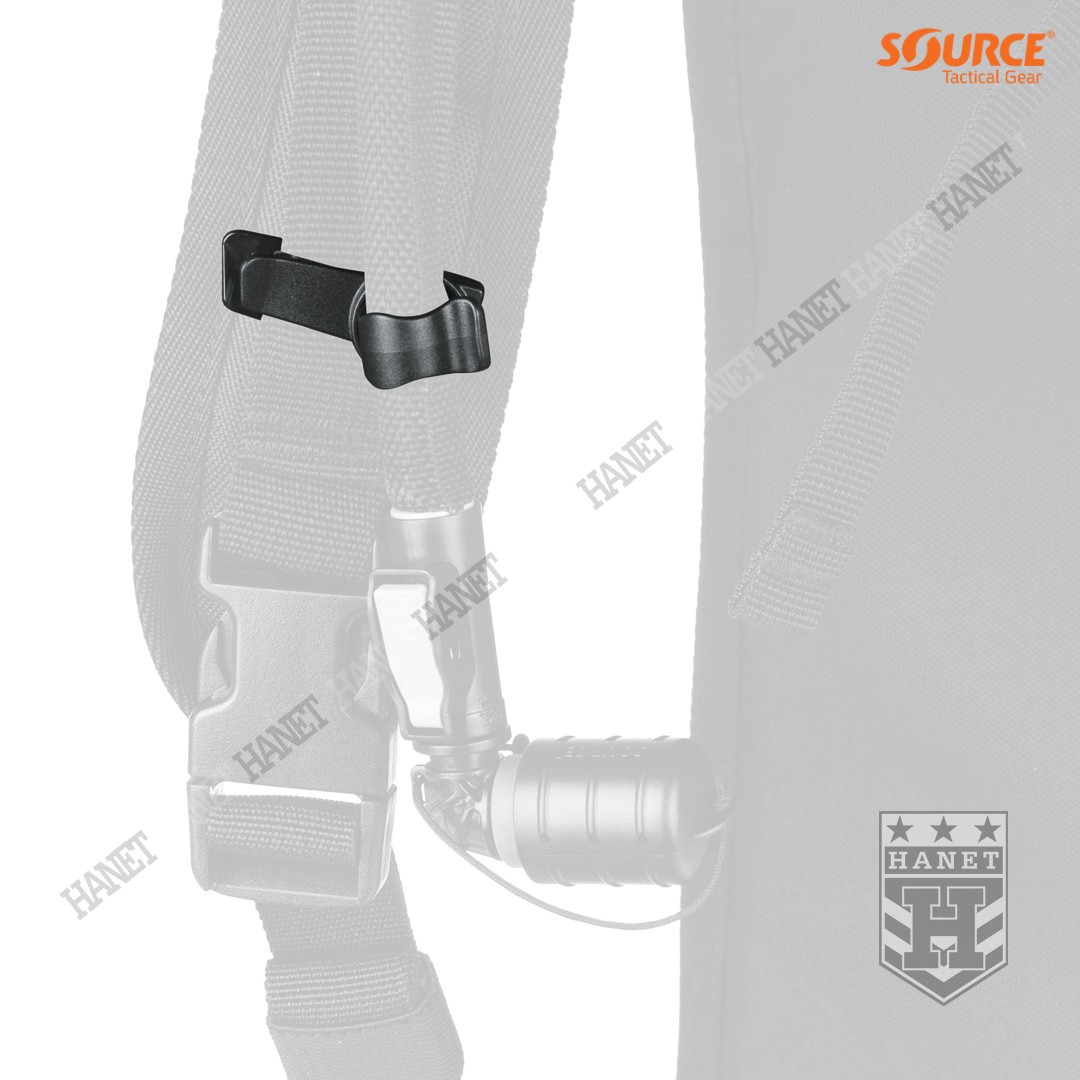 Bardzo łatwy w montażu i demontażu. Możliwość mocowania klipsa na szelkach plecaków, taśmach piersiowych, kamizelkach taktycznych MOLLE, a nawet odzieży. Bardzo silne magnesy neodymowe przyciągają się już z odległości 5 cm. Kołnierz wokół magnesu na szlufce utrzymują rurkę w miejscu, jednocześnie pozwalają na łatwe odpięcie. Szlufka mocująca została wyposażona w ząb blokujący go na taśmie. Wyprofilowany uchwyt na rurkę, nie wymaga rozbierania zaworka - wciskany. Klips wykonany z solidnego tworzywa POM. Zapakowany w estetyczne pudełko.