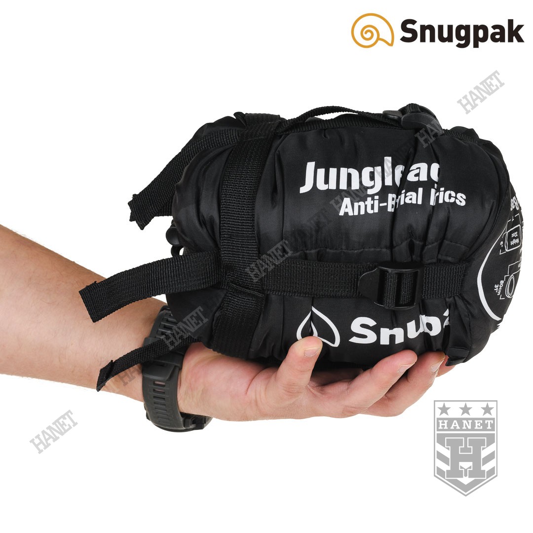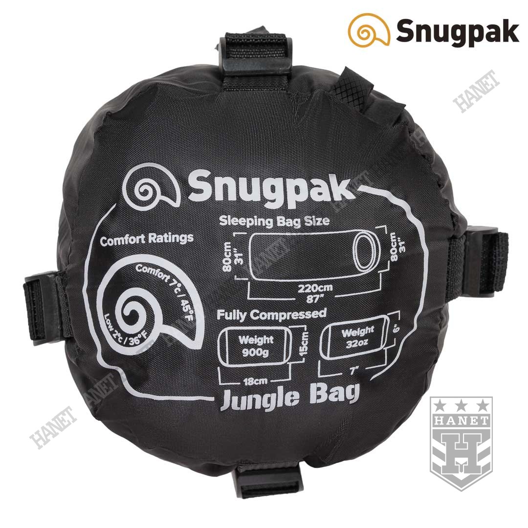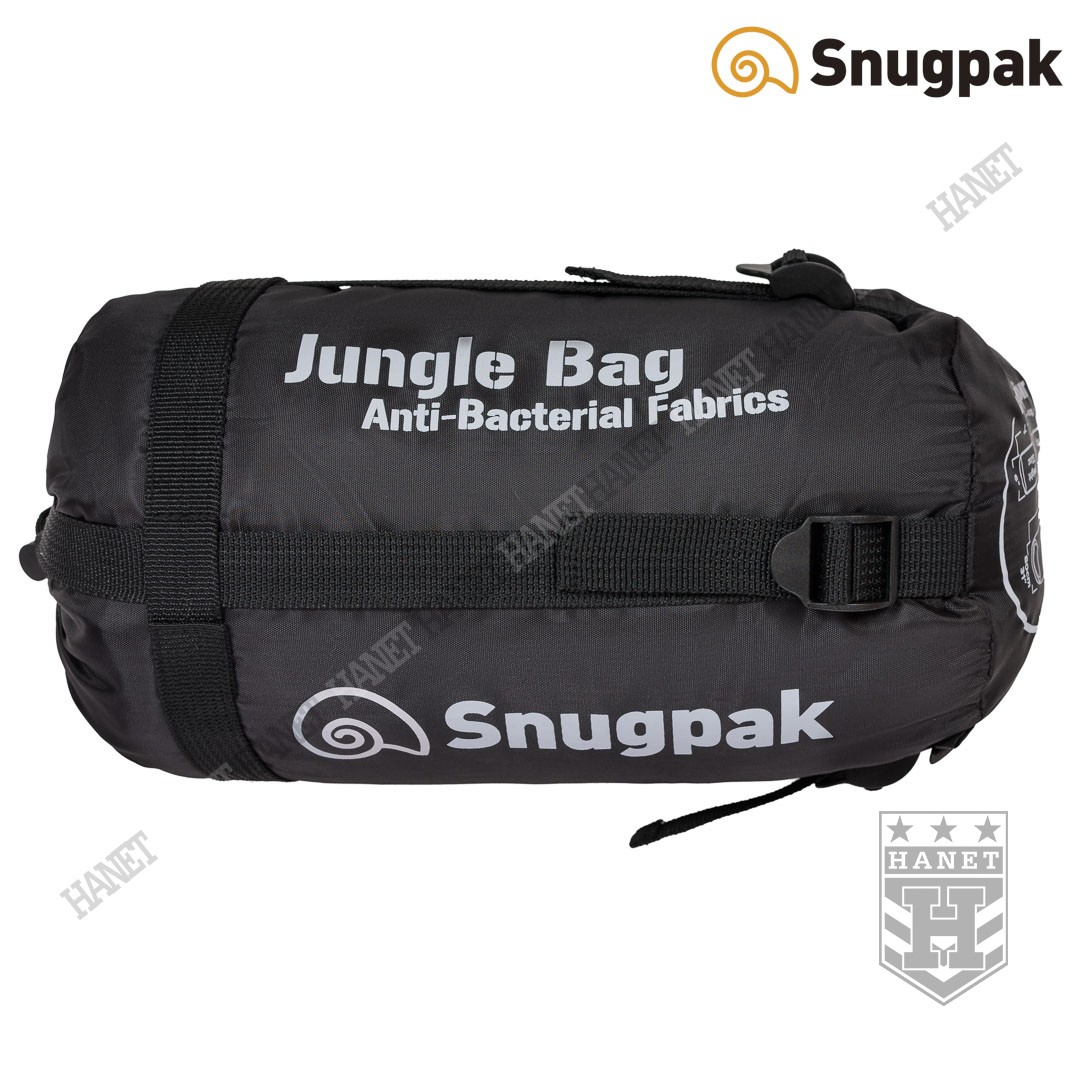 Model JUNGLE BAG to lekki i kompaktowy śpiwór przeznaczony na wiosnę, lato i jesień. Waga JUNGLE BAG to zaledwie 900g, a wymiary po kompresji 18 x 15 cm. Temperatura ekstremalna wynosi od 2°C, komfortu od 7°C, te imponujące parametry Snugpak® uzyskał dzięki zastosowaniu najnowocześniejszych technologii. Użyte materiały zabezpieczają przed wiatrem, są antybakteryjne i zapewniają ciepło. JUNGLE BAG został dodatkowo wyposażony w odpinaną moskitierę.