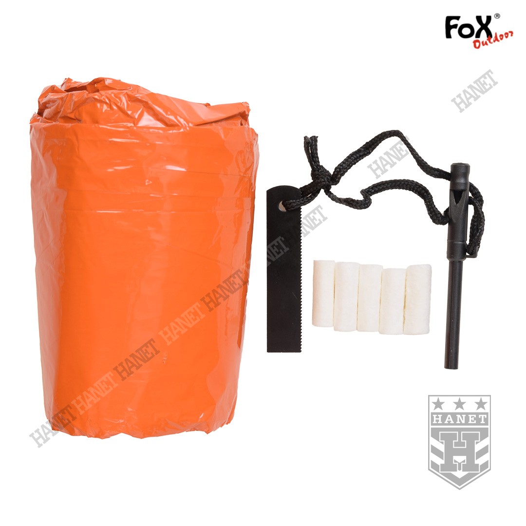 Ratunkowy zestaw przetrwania: śpiwór, krzesiwo, rozpałka i gwizdek ratunkowy – wszystko mieści się w kompaktowym pokrowcu. Produkt niemieckiej marki FOX® Outdoor. Zestaw przeznaczony na w sytuacje awaryjne. Ważny element wyposażenia ratowników górskich, outdoorowców i miłośników freerideu. Niezastąpiony podczas nagłego załamania pogody lub zdarzeń losowych. Niewielkie gabaryty i niska masa, zmieści się w każdym plecaku, a nawet w kieszeni kurtki. Zestaw zabezpiecza przed hipotermią, daje możliwość rozpalenia ognia i wezwania pomocy – może uratować życie.